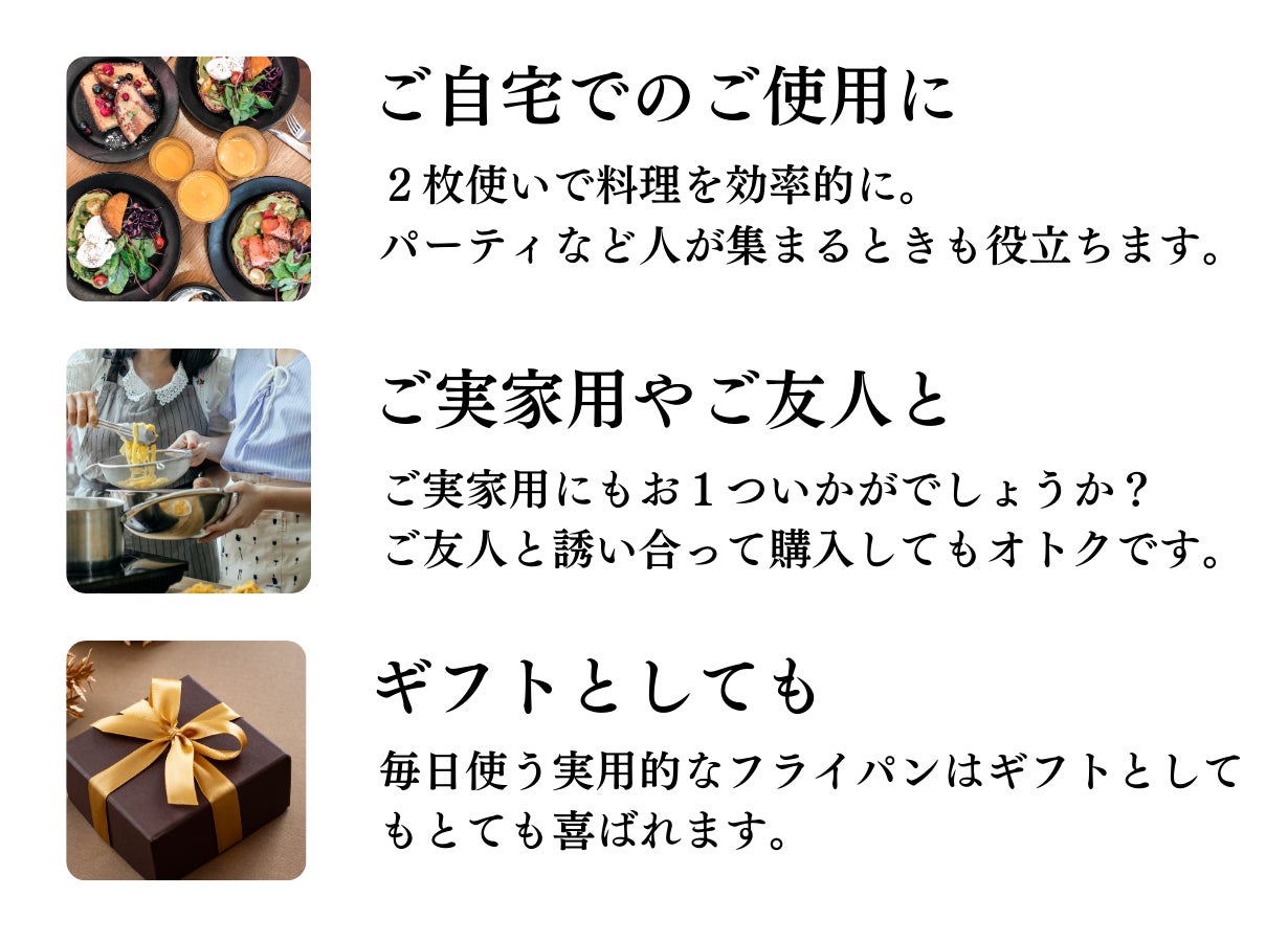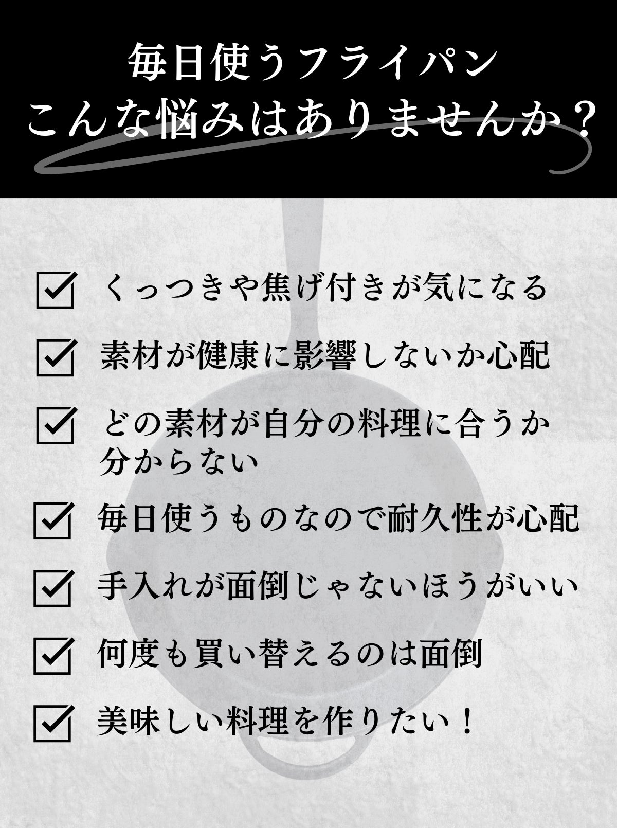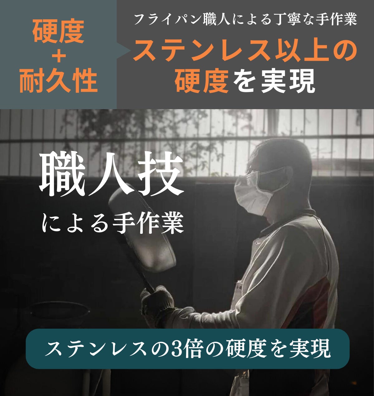 どんなフライパンよりも使いやすく、そして毎日の料理の"相棒"としていつまでも使い続けていただけることを目指して1つ1つ真心こめて作られています。