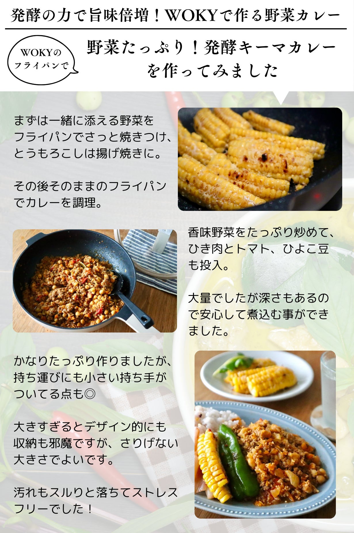手軽なパンやお菓子、お料理を中心として日本全国に生徒様を抱える人気教室「米粉パンとおやつの教室pakupaku」の宇木みずほ先生には、「WOKYHahapan2.0」で野菜がたくさん入った発酵キーマカレーを作っていただき、「料理が楽しくなるフライパンですね!」と高評価をいただきました。