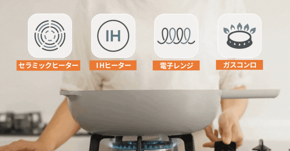 IHやガスコンロはもちろん、セラミックヒーターや、電子レンジなどあらゆる熱源でご使用いただけます。
