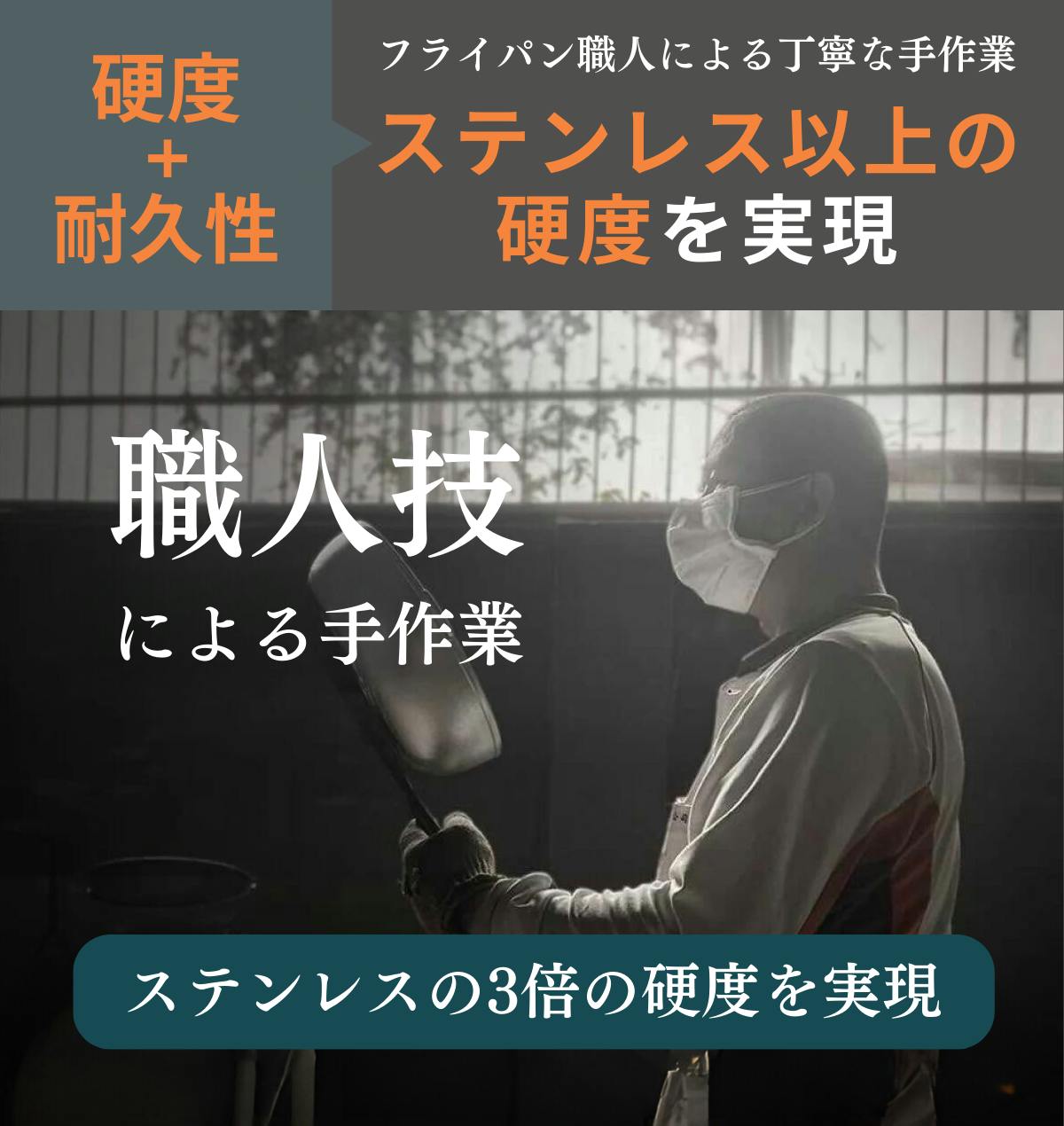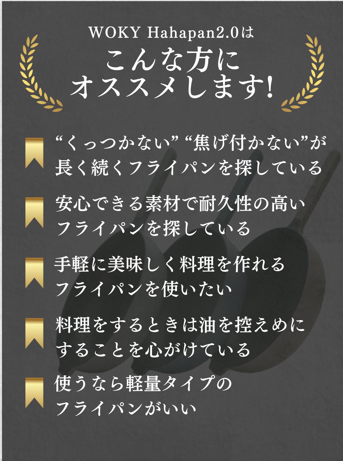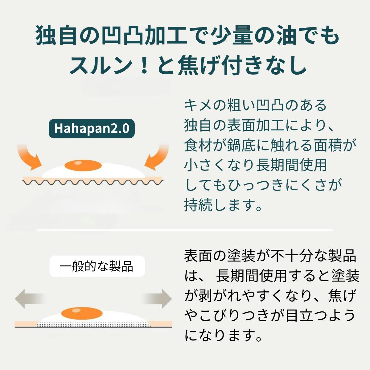 フライパンメーカーとして30年以上の実績を誇るWOKY社が開発した「Hahapan2.0シリーズ」はフライパン職人による丁寧なアルマイト加工で一般的なステンレスの3倍の硬度を実現。