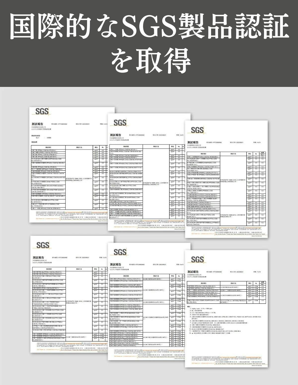 加えて国際的な製品認証「SGS認証」も取得しています。