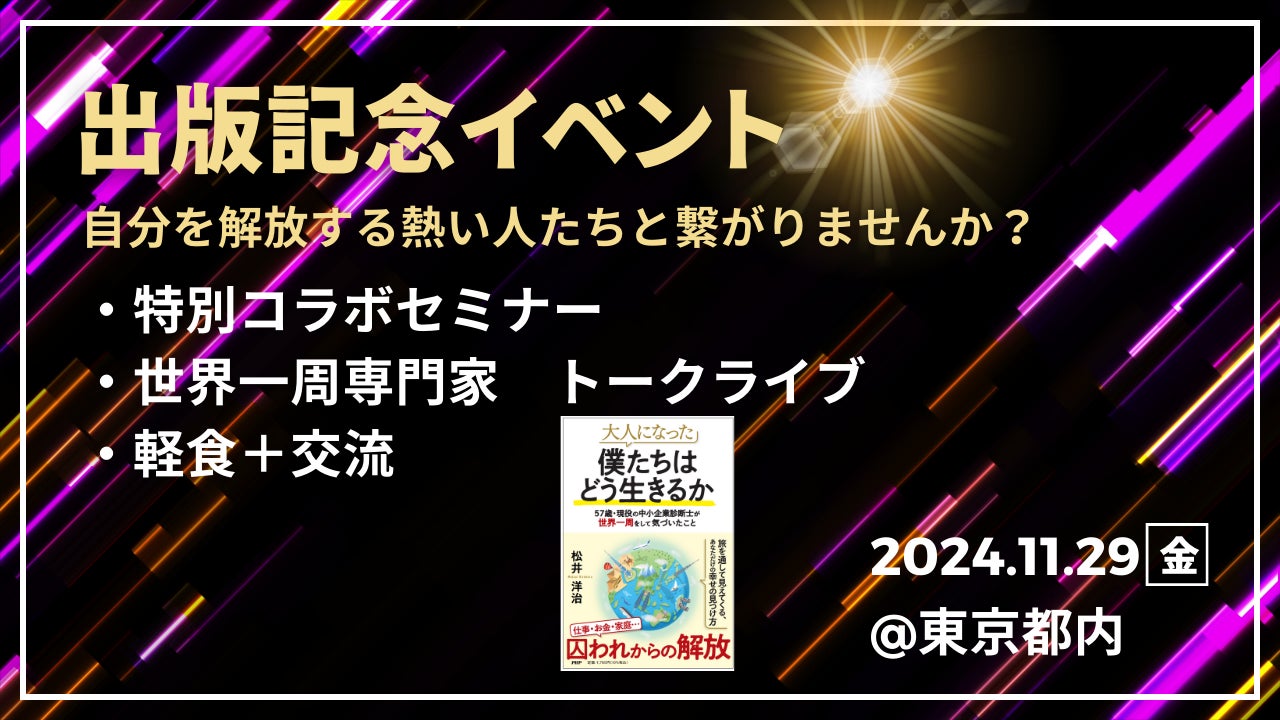 直接、著者の体験談や想い(日本の隠れた素晴らしさなど)を聴くことができる特別な機会です!世界一周を達成した著者の視点を通じて、人生を豊かにするための貴重な気づきを得るチャンスとなるでしょう。