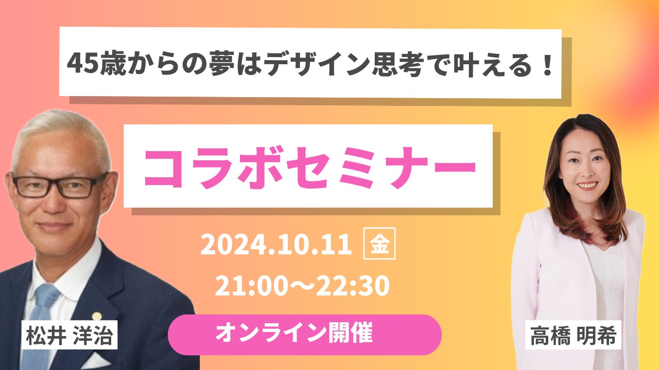 10月11日開催、松井洋治と高橋明希によるオンライン コラボセミナー「45歳からの夢はデザイン思考で叶える」への参加権