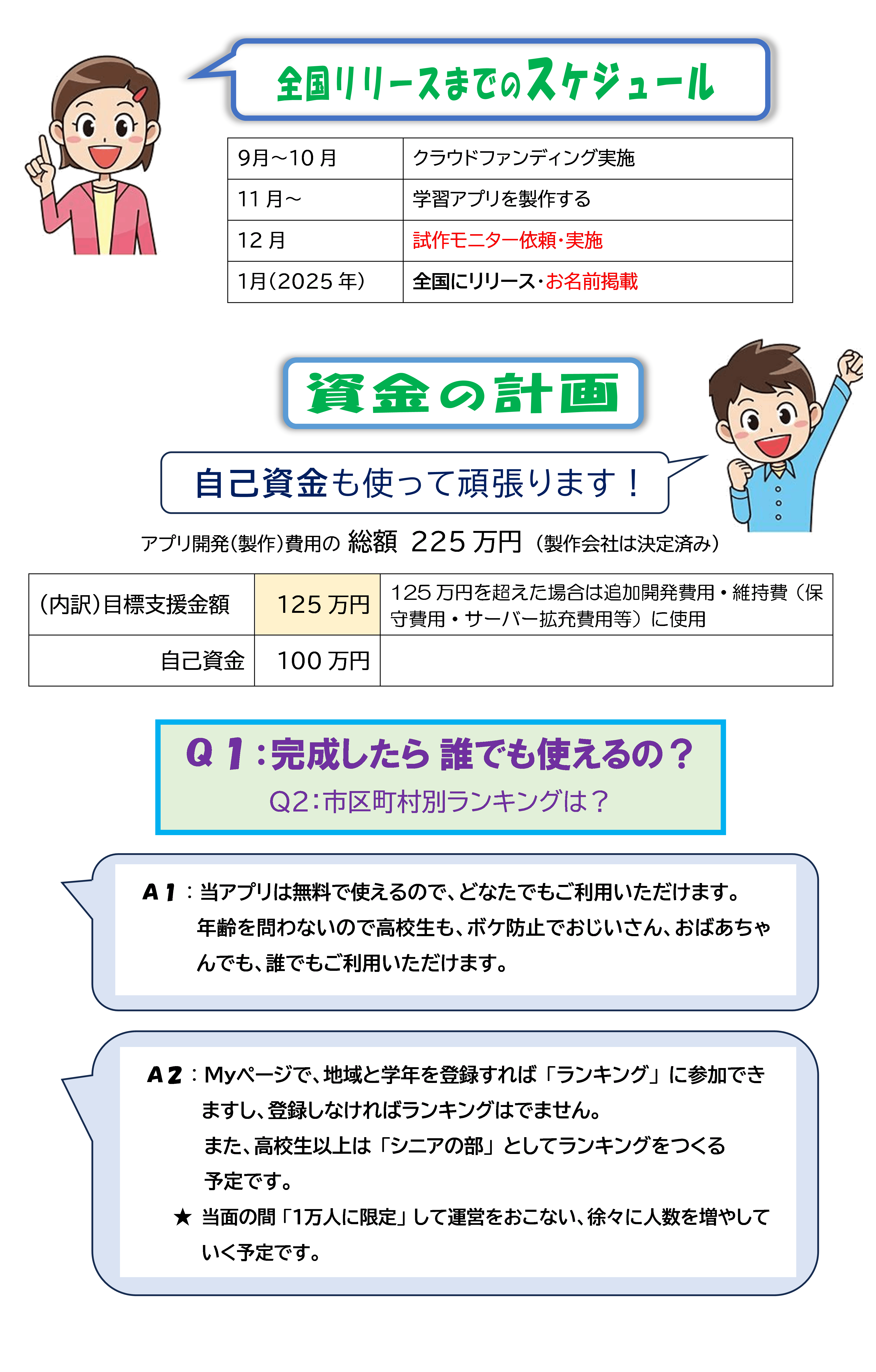 現在、アプリ開発の専門家と協力しながら、225万円(自己資金100万円+支援金125万円)で、アプリの基本設計は完了しております。