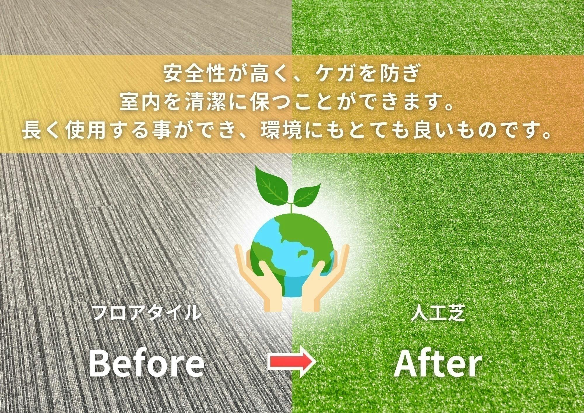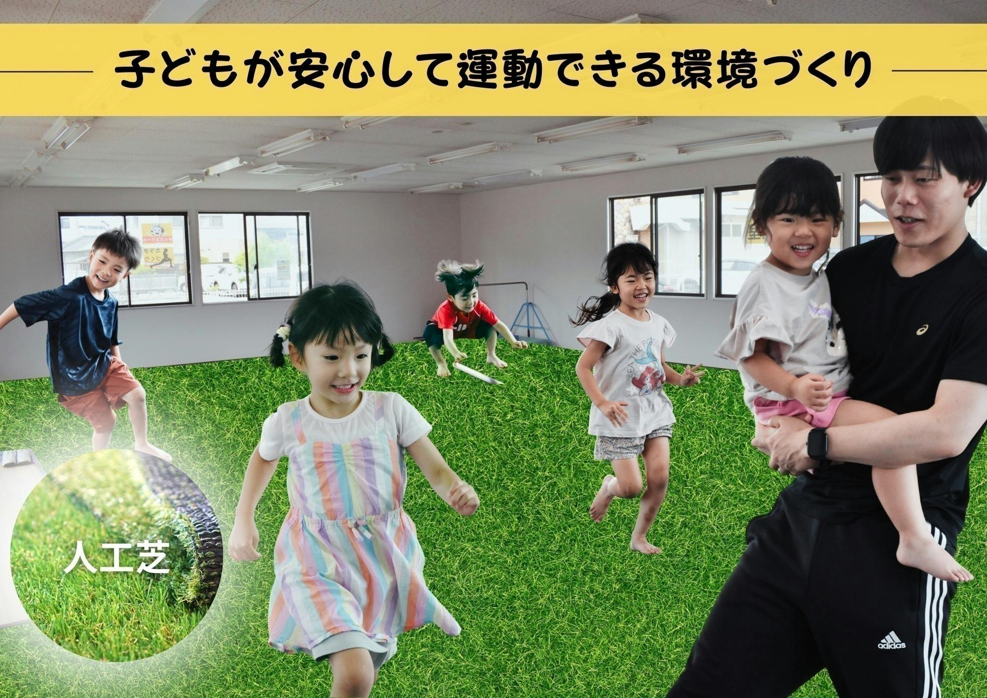 私たちの運動教室GoトレKIDSでは、子どもたちが自由に走り回り、さまざまな運動を通じて体を動かす楽しさを体感できる場を提供しています。私たちはこれにより、脳の刺激から子どもたちの創造性や想像力にも影響していると考えています。しかし、現在のフロアタイルでは転倒時の衝撃が大きく、安全面での不安が残る状況です。そこで、室内のフロアタイルを人工芝に変更し、より安全で快適な運動環境を実現したいと考えています。人工芝はクッション性が高く、転倒時の衝撃を柔らげるため、子どもたちが安心して運動に取り組むことができます。