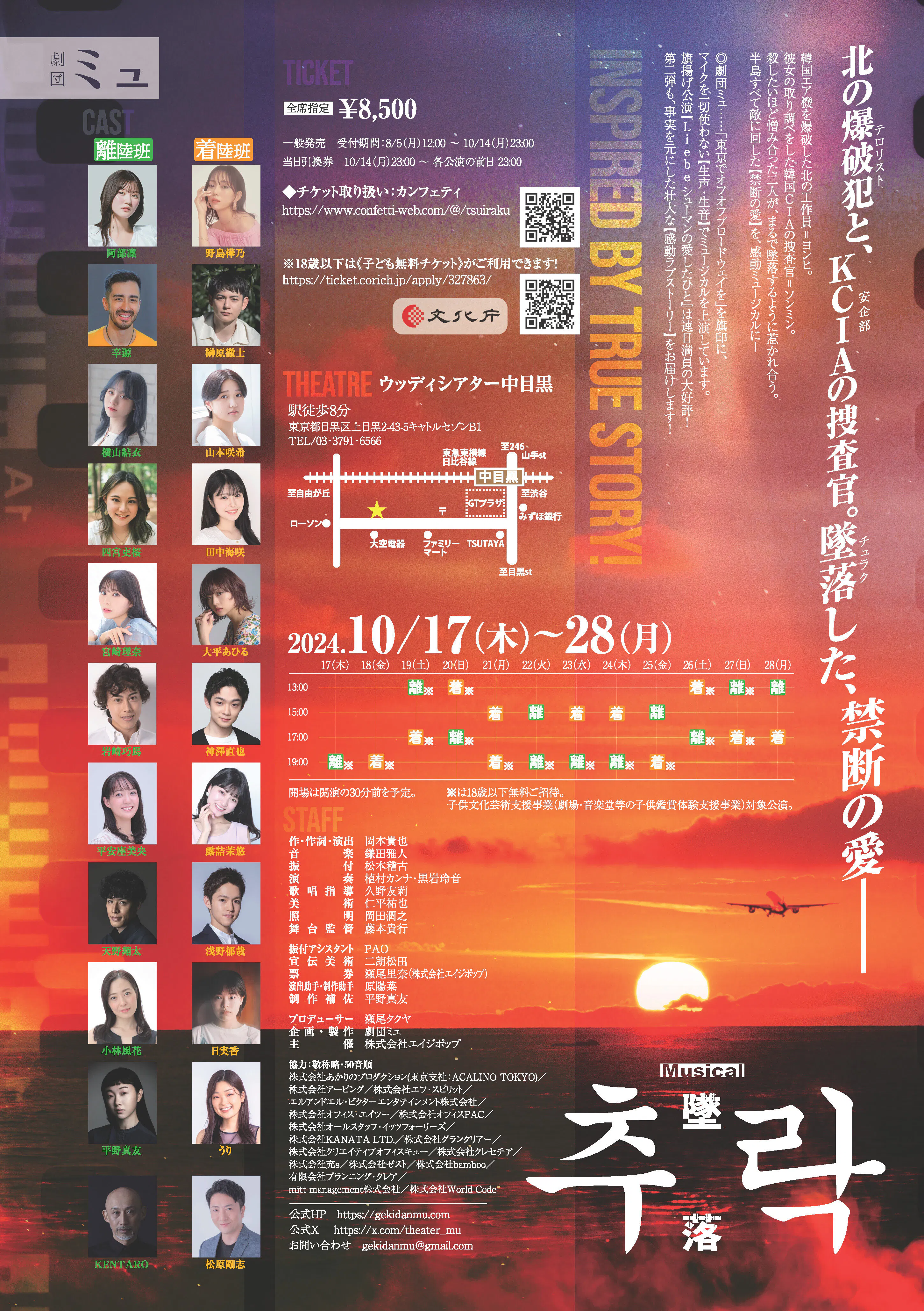 『추락 -墜落-』は、北朝鮮の工作員と韓国の捜査官との禁断の恋を描きます。実際の事件の重要なエッセンスを残しながら完全にフィクション化し、世界に類を見ない、強烈で、感動的な、まったく新しいミュージカルが生まれました。