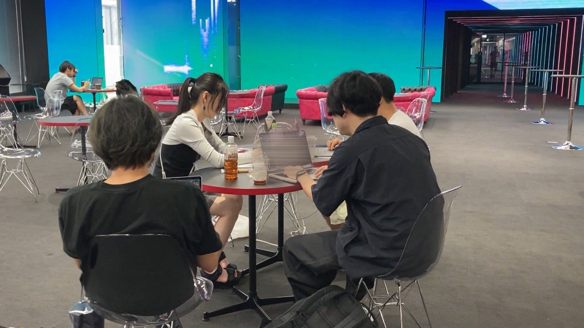 私の個展会場の床、壁、天井がつるつるなので、体験エリアには吸音パネルや絨毯を用意した方がいいかもねと話していました。