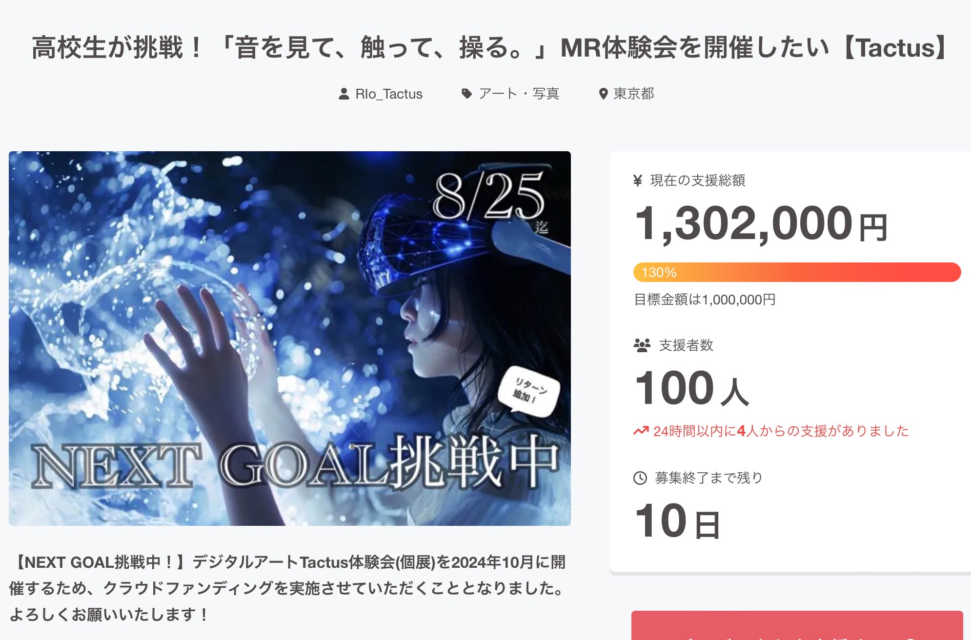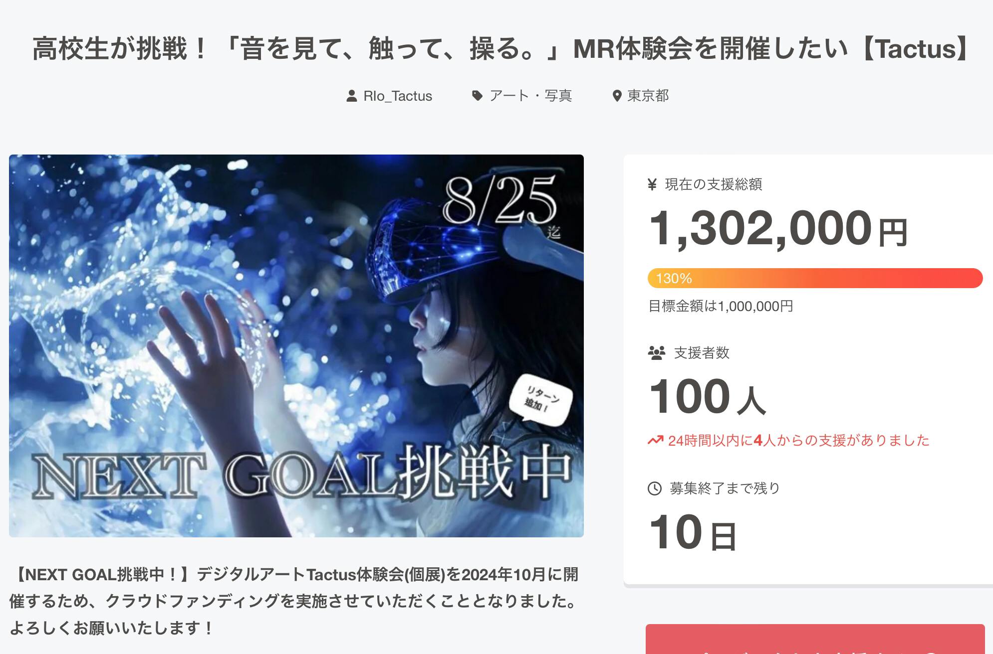 このプロジェクトは、2024/07/30に募集を開始し、 130人の支援により 1,576,500円の資金を集め、 2024/08/25に募集を終了しました