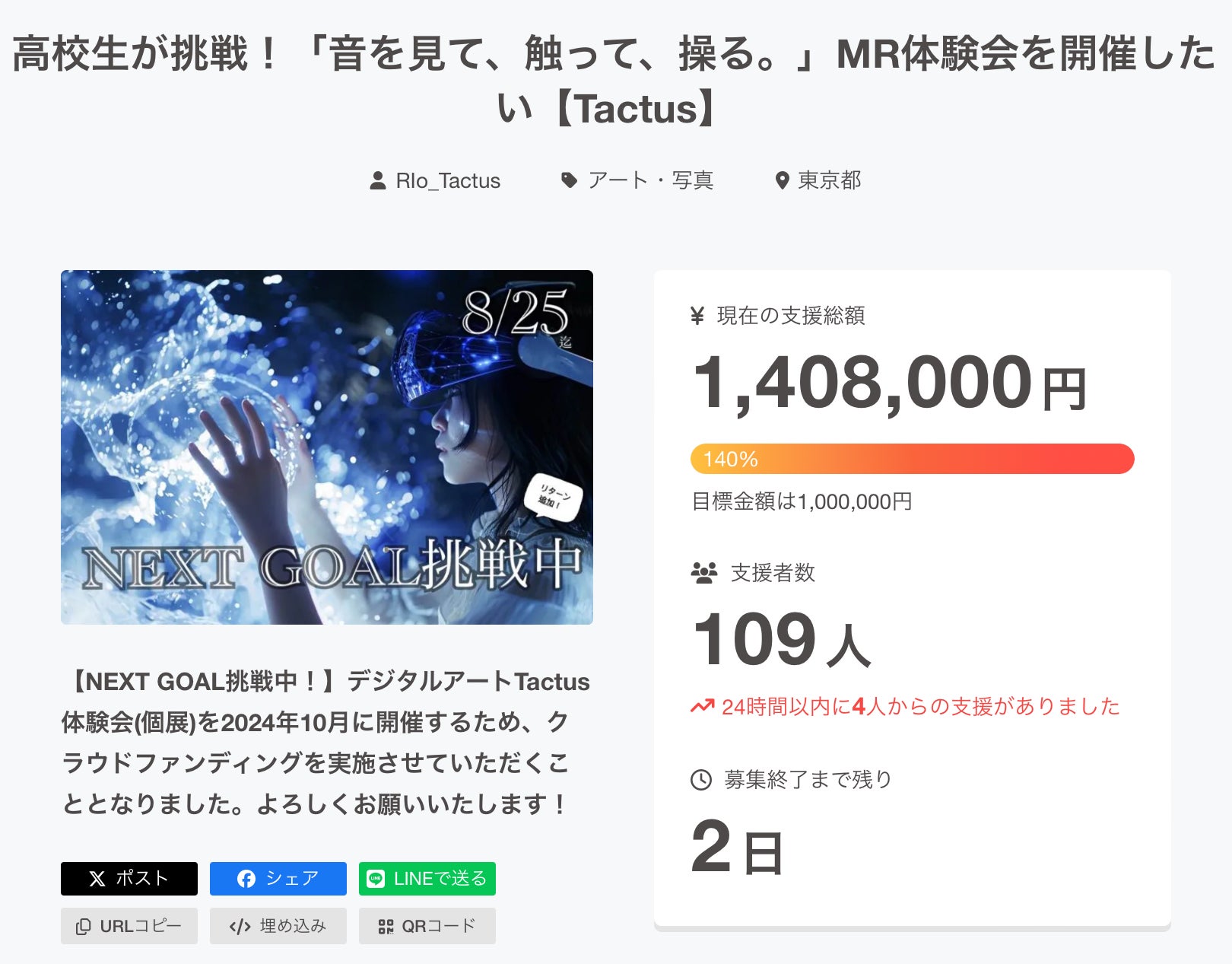 【残り2日】高校生が挑戦!「音を見て、触って、操る。」MR体験会を開催したいTactus- 10%オフクーポン付きURLはこちら