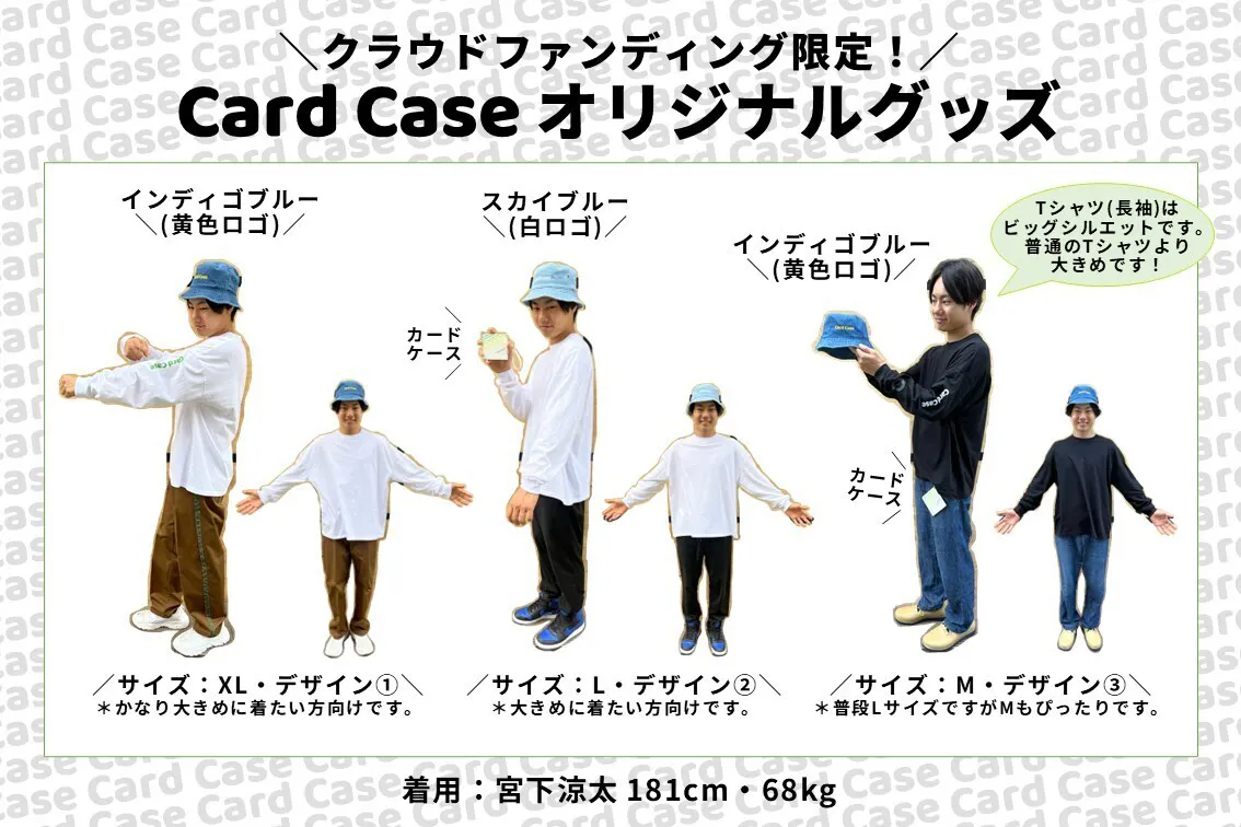 オリジナルグッズは、カードケース・Tシャツ(長袖)・バケットハットを作りました。グッズはすべてクラウドファンディング限定でのお取り扱いです。クラウドファンディンでご支援いただいた方限定のオリジナルグッズとなります!