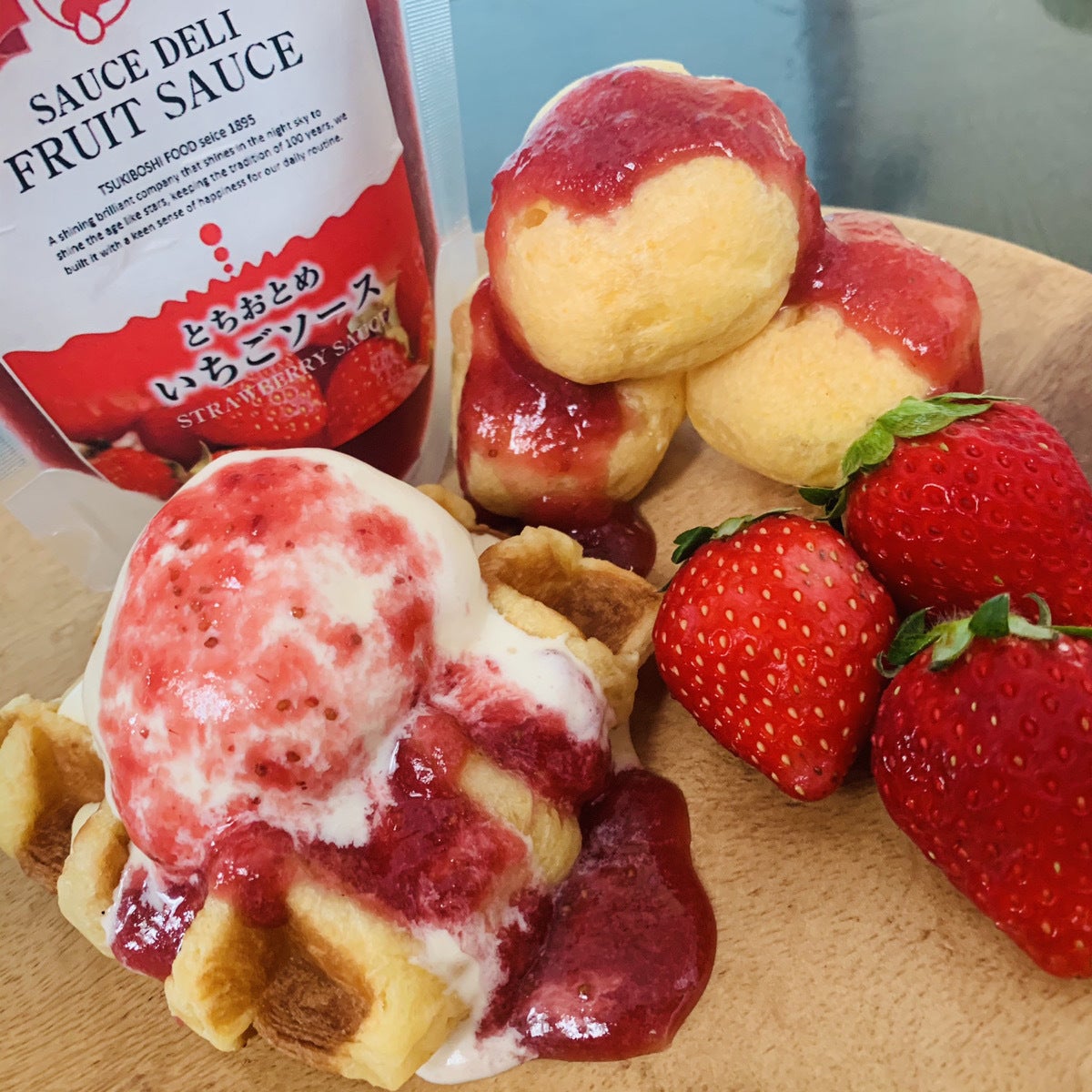 (▲おかげさまで「とちおとめ いちごソース」定番商品化しました!この他、「ゆずとはちみつのソース」、「まったりとろける マンゴーソース」も発売しました。)
