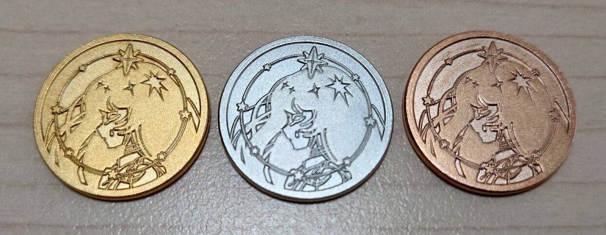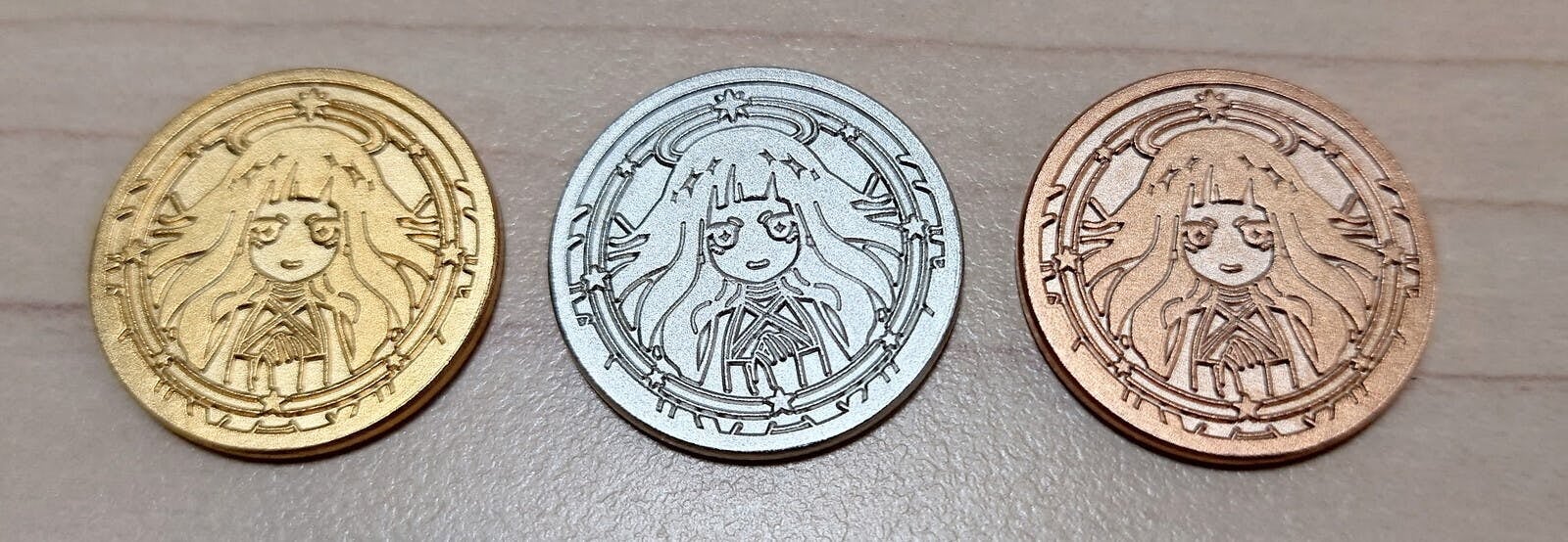 ボードゲーム等で点数カウンターやトークンとして使用することができる、オリジナルデザインのメタルコインを制作するプロジェクトです。