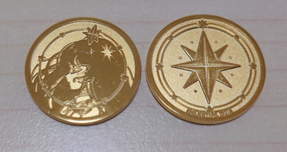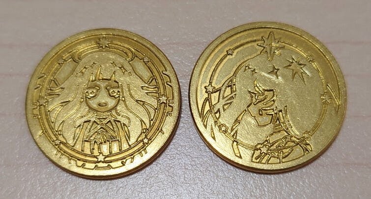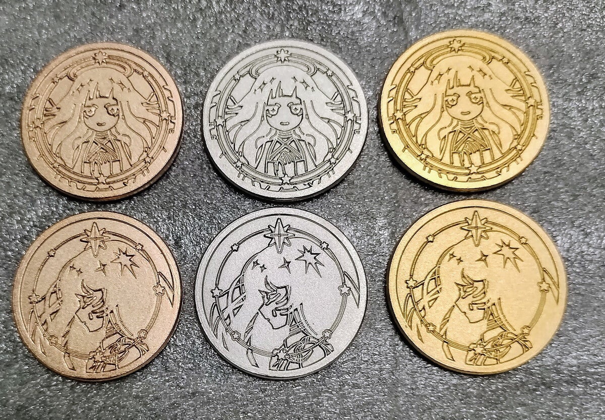 それはさまざまなボードゲームを遊ぶときに幅広く使えるような、オリジナルデザインのメタルコインです。
