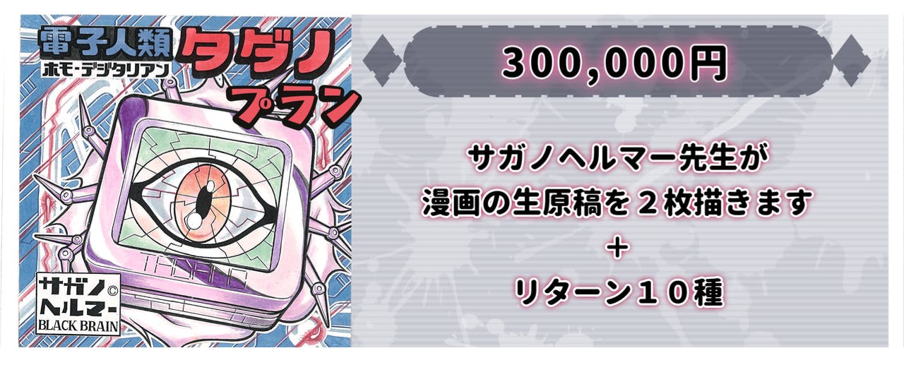 1990年代に週刊ヤングマガジンで連載されていた、カルト作品「BLACK BRAIN」と、サガノヘルマー先生という奇才をより多くの人に知ってもらいたい!という事で、「BLACK BRAIN」のアニメ化を目指します。