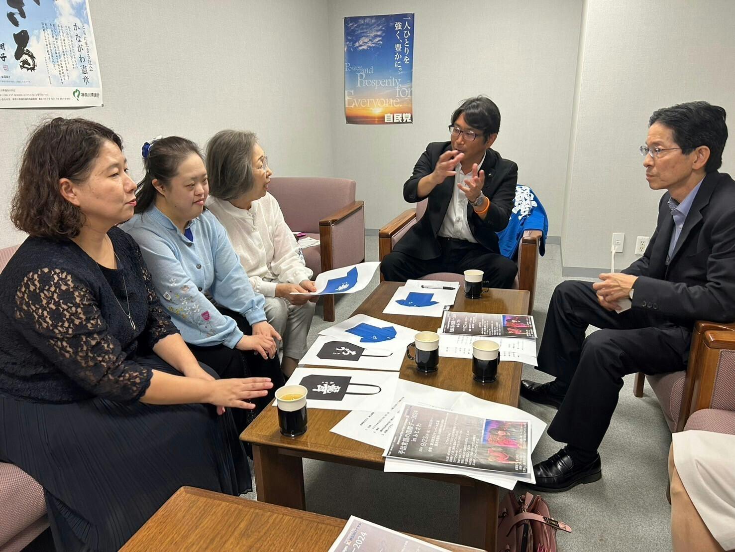 本日、金澤翔子さんと手話言語国際デー2024 in ふじさわの打ち合わせを行いました。当日の席上揮毫(書道パフォーマンス)にご期待ください!金澤翔子さん直筆の「聾」、「ろう」の文字をプリントしたTシャツも喜んでいただけました。ぜひ当日はこの「聾」Tシャツを着て、会場を青に染めましょう。最後に、金澤翔子さんが手話を学びたいとおっしゃていただき、実行委員会メンバーも感無量です。手話言語国際デー2024 in ふじさわが無事に開催されるよう最後まで頑張ります!