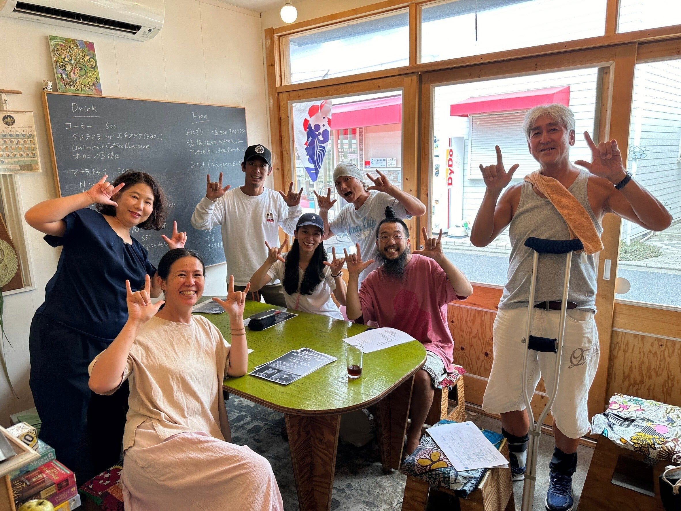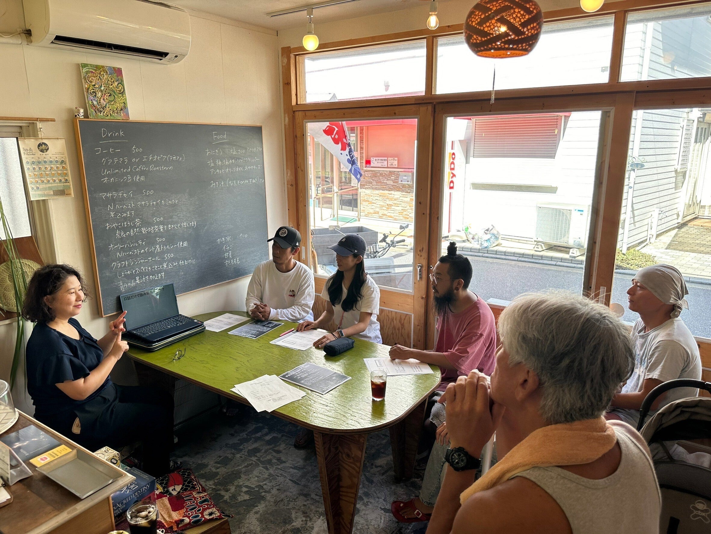 当日出店予定の「キッサコラボアンドパントリー」さんのお店をお借りし、挨拶から接客の時に使う手話などを中心に覚えていただき、楽しい手話講習会になりました。