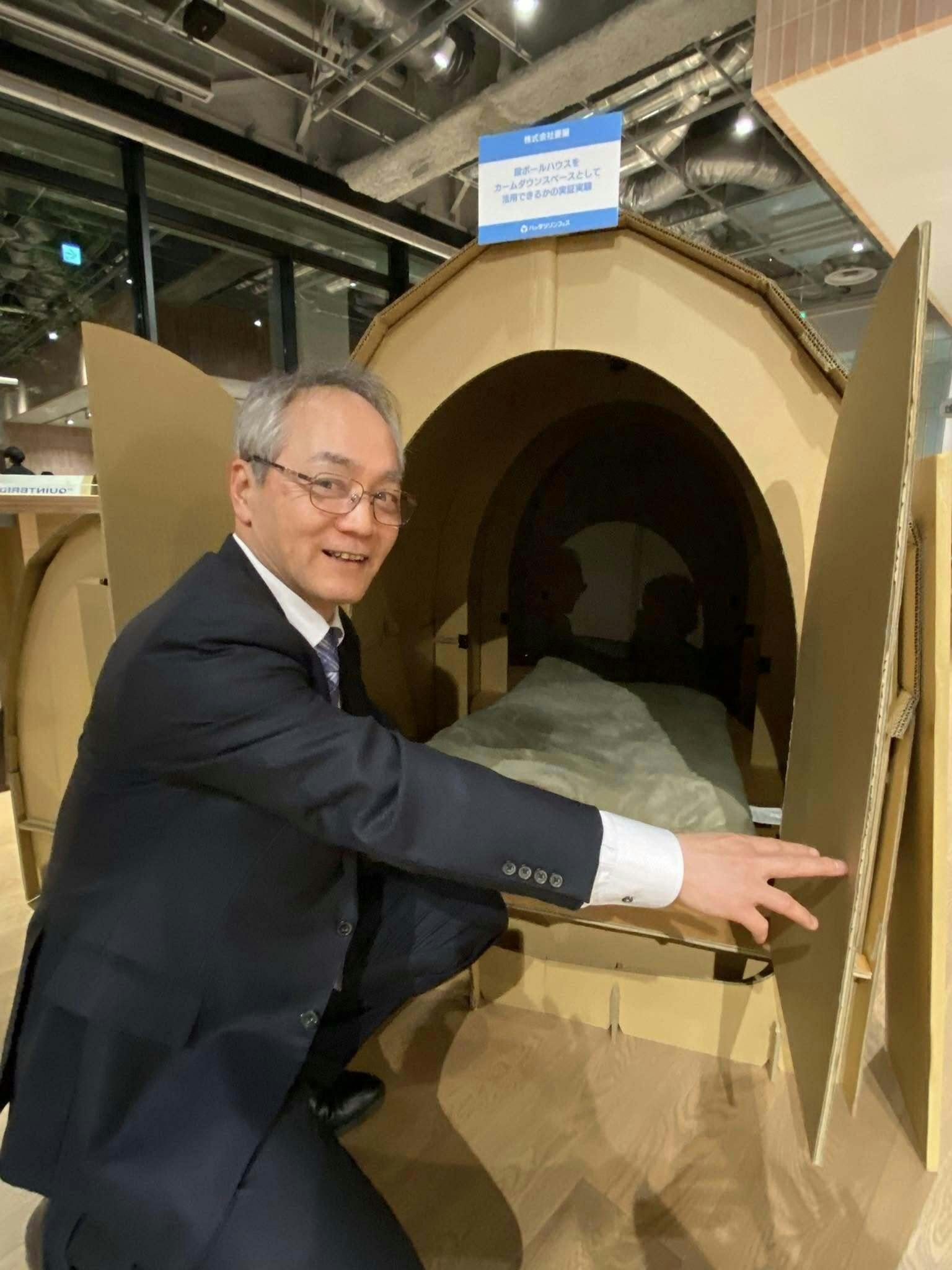 段ボール製カプセルルームの体験をしていただく実証実験を合同会社Ledesone様と共に実施させていただきました。