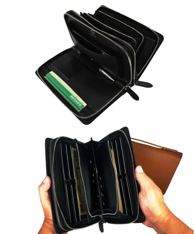 仕様:紙幣スペース×2、小銭入れ×2、カードポケット×19、フリーポケット×4、ペン挿し×1、スマホポケット×1