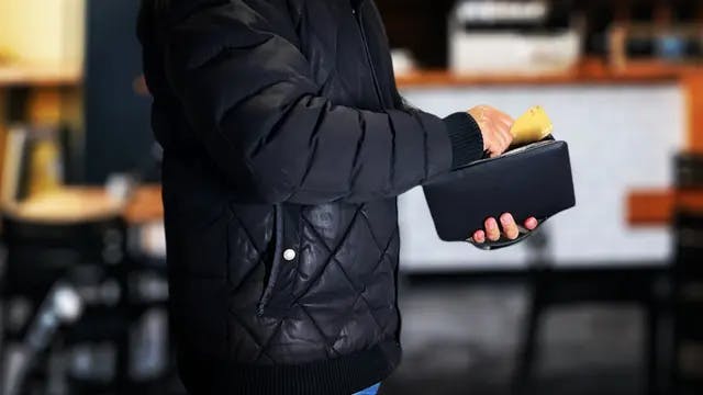 ショルダー着用時は、クルンっとひっくり返してお支払いもスムーズ!