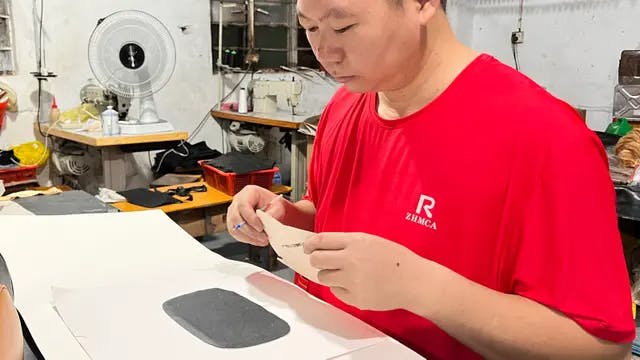 この鞄は、レザークラフト職人の李さんが主に生産を担当してもらっています。李さんの作るバッグは品質も安定し、しっかりとした縫製で生みだされ信頼のおける職人さんです。