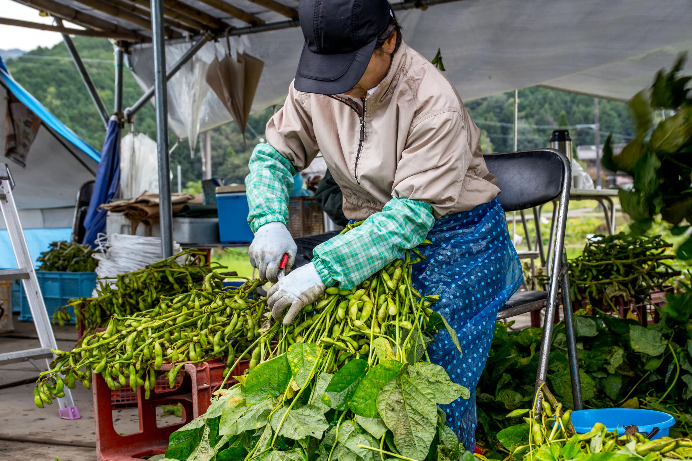 丹波篠山市の農家さんの畑で黒枝豆収穫体験 with 旅するキッチンカー