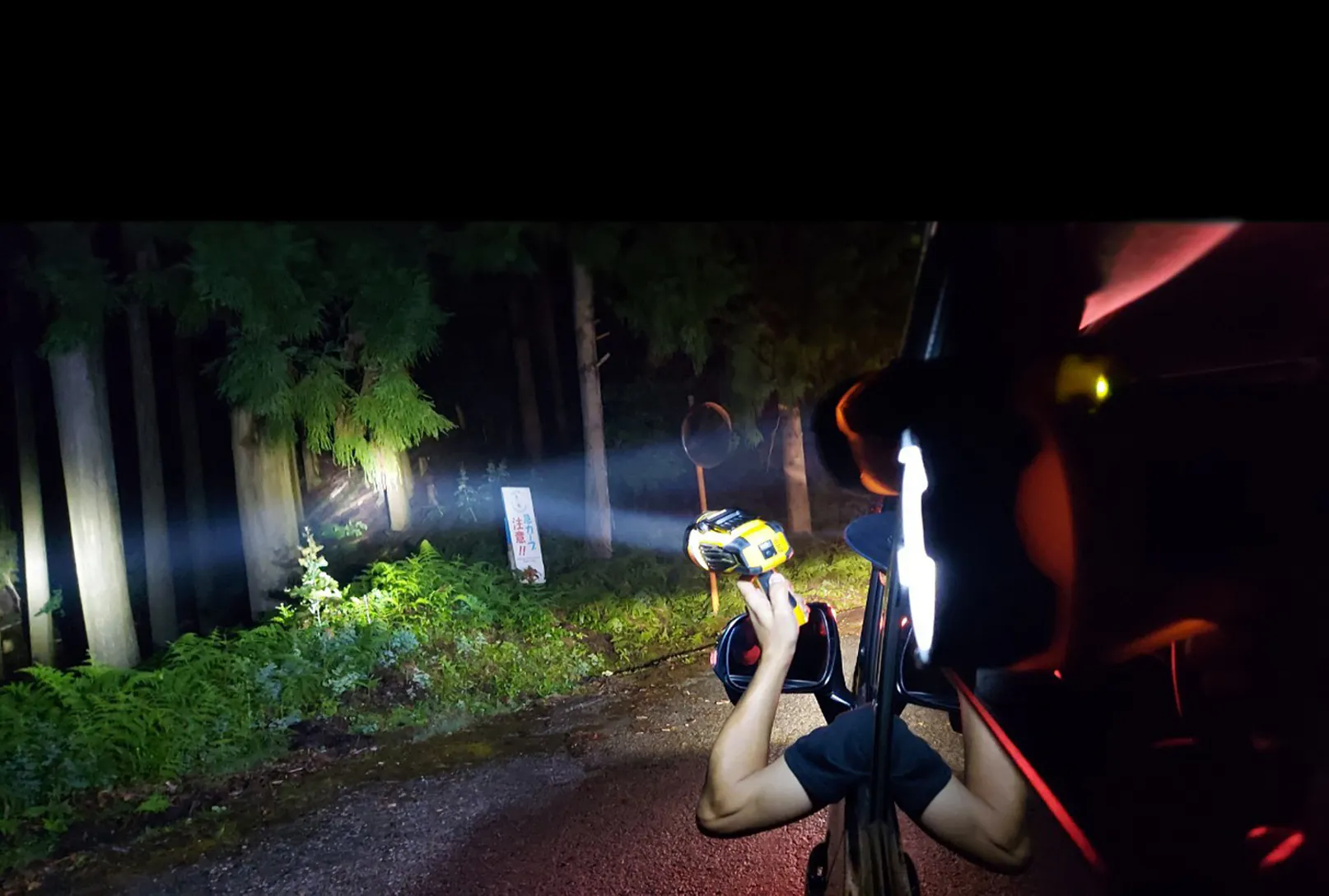 ライトで探す暗闇に光る眼!
