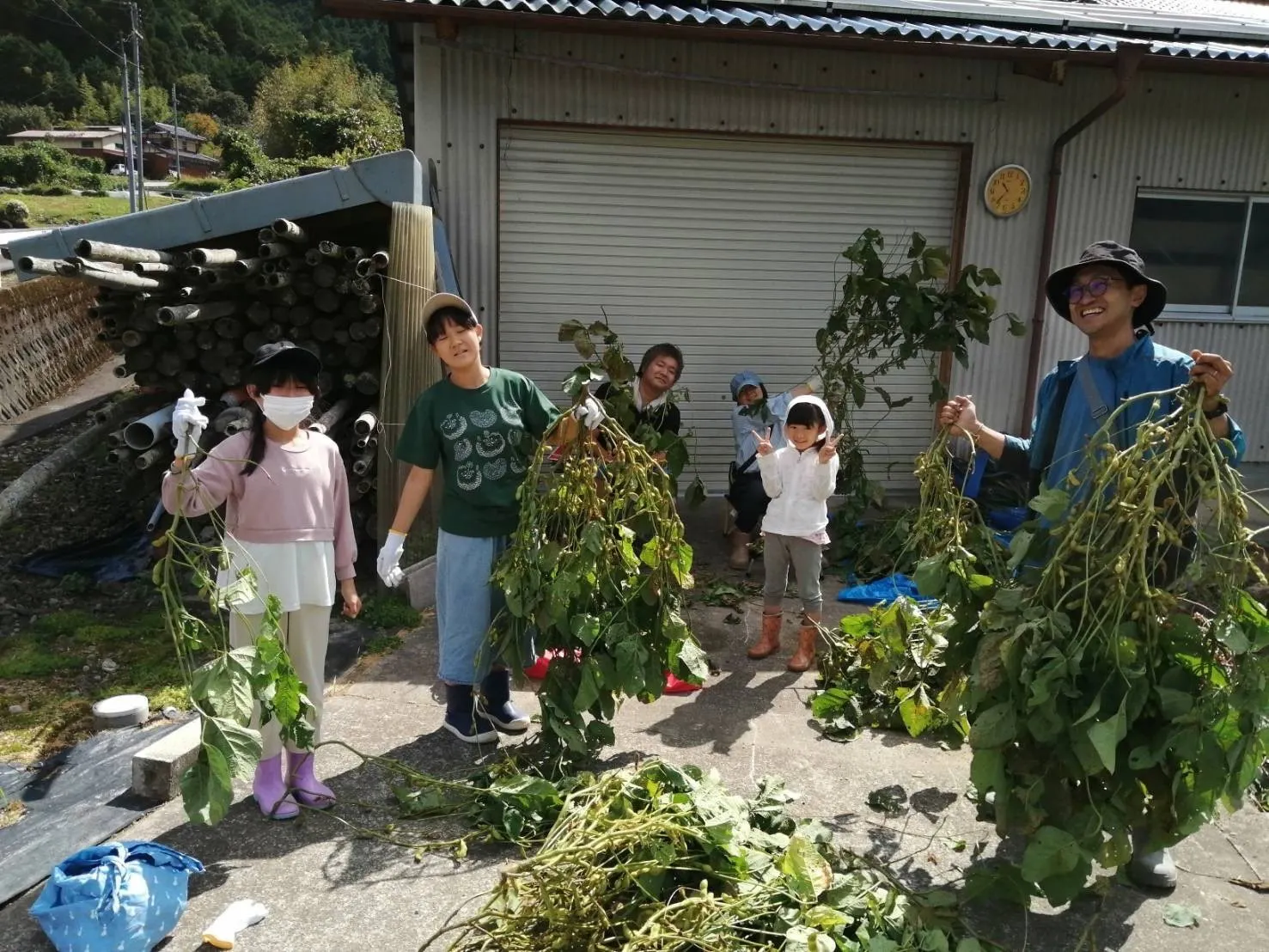 晴天の中、黒枝豆の収穫体験♪