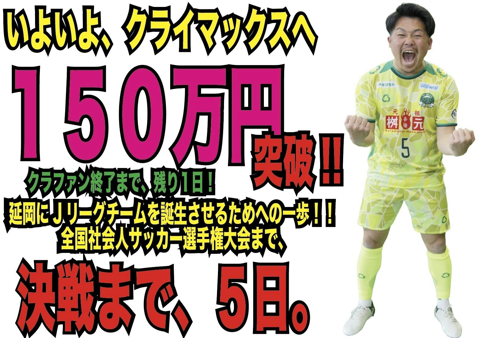 2024/10/14 10:54\\ クラファン終了まで残り、1日 //いよいよ、FC延岡AGATAのクラウドファンディングもクライマックスになりました。ネクストゴールへまでどれだけ近づけるか。。今回、このクラウドファンディングで、FC延岡AGATAについて調べて頂き、見て頂き、考えて頂き、本当に感謝しております。クラファンが終了ということは、いよいよ全社に向けて出発をして、全国社会人サッカー選手権(滋賀県)に乗り込みます!!『私たちは、日本一を獲る』を合言葉に準備を重ねてきました。一戦一戦、目の前の試合で勝ち続けていくための最大限の準備をしていきます。皆さまの思いと共に、戦ってきます!!明日の最終日まで、宜しくお願いします。 もっと見る
