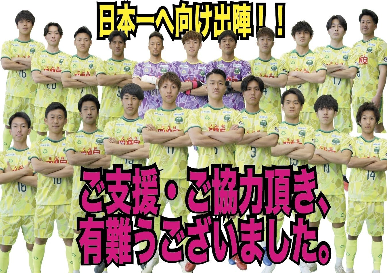 2024/10/16 00:08ご支援・ご協力頂き有難うございました!!11月の全国地域サッカーチャンピオンズリーグへの出場権を得ると同時に、日本一を獲得してきます!!共に戦ってください!!皆さまを笑顔に出来る結果をお届け致します。29日間、本当にありがとうございました。※購入頂きました皆さまへは、改めてご連絡をさせて頂きます。リターン品が届くまでお楽しみにお待ち下さい。 もっと見る
