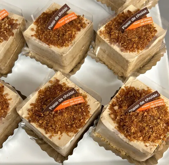 モカ味のバタークリームケーキでアーモンドと砂糖を炒って砕いたものをトッピング♪