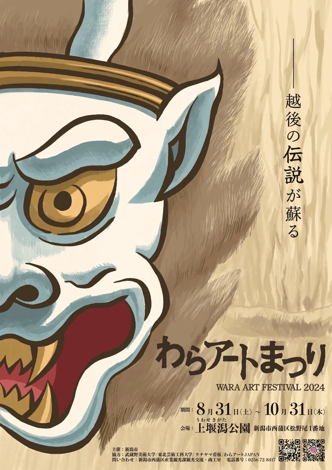 この活動の発端となった新潟のわらアート祭りが8/31〜10/31まで新潟県新潟市西蒲区にある上堰潟公園にて行われます。「越後の伝説」をテーマに制作しており、なんと今年は夜間ライトアップも行います!
