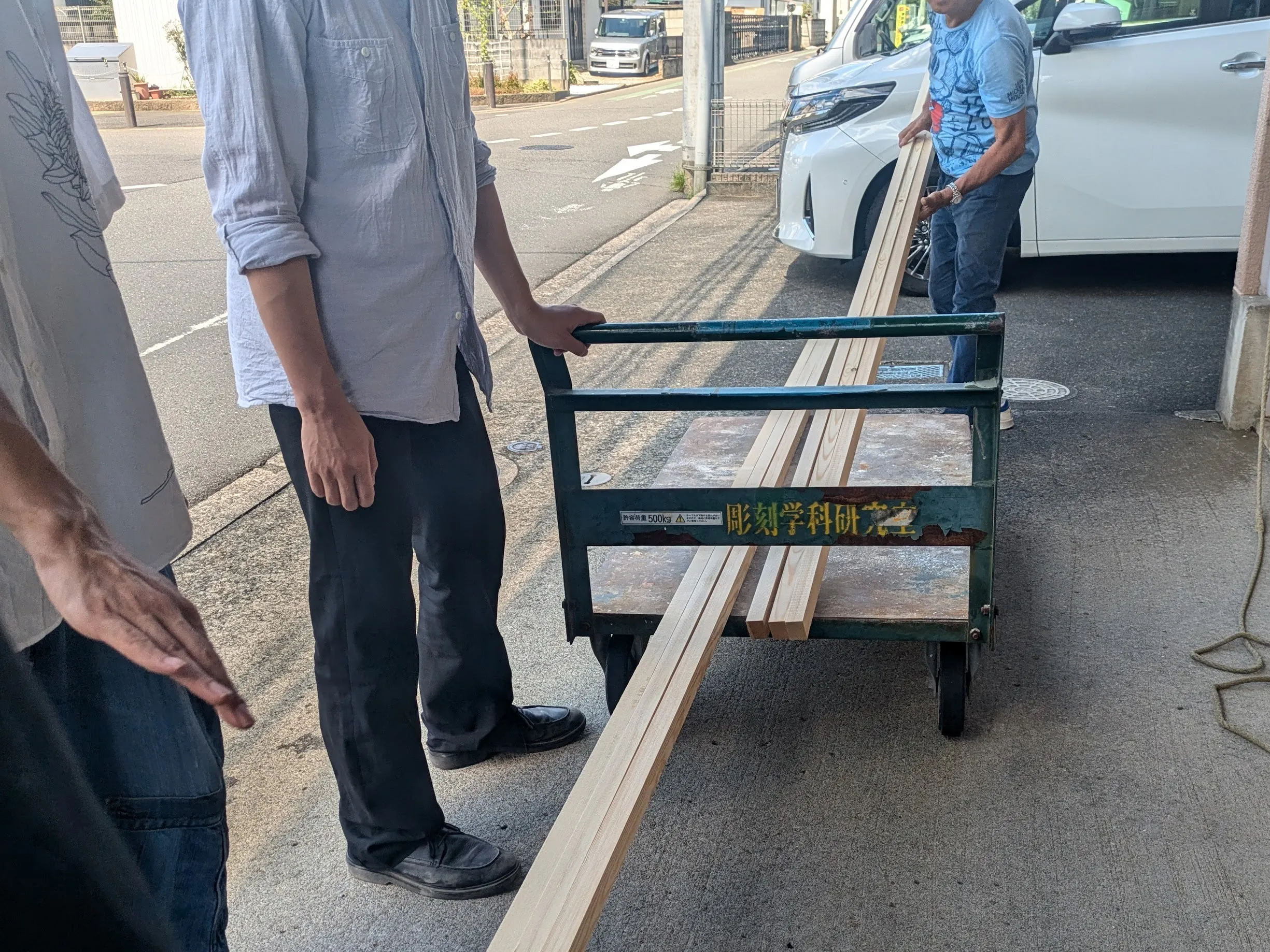 購入した垂木を校舎まで運んで行きます!