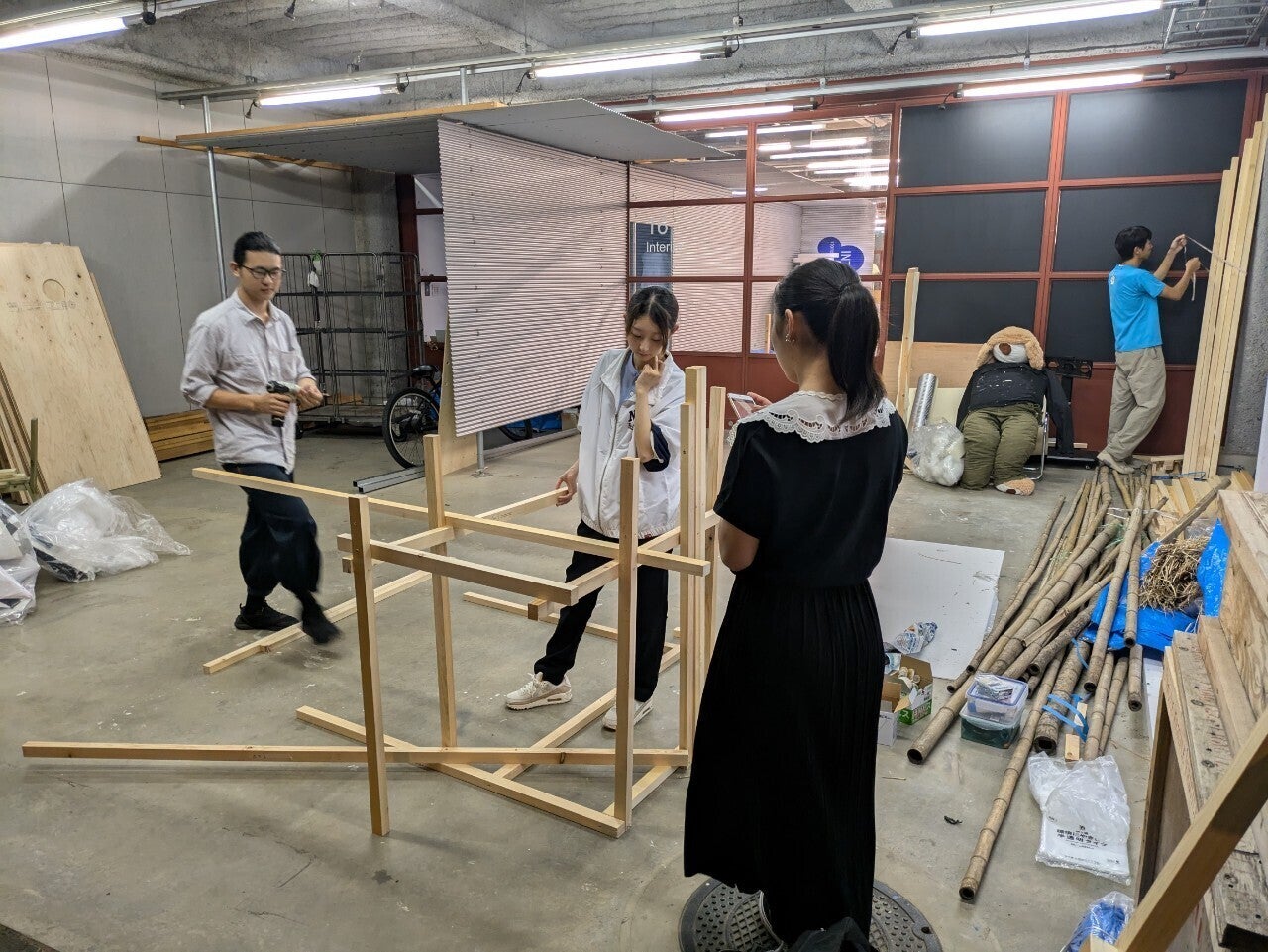彫刻科在籍の幹部メンバーのおかげで無事模型が完成し、現在はそれに合わせて垂木を組み立てています!