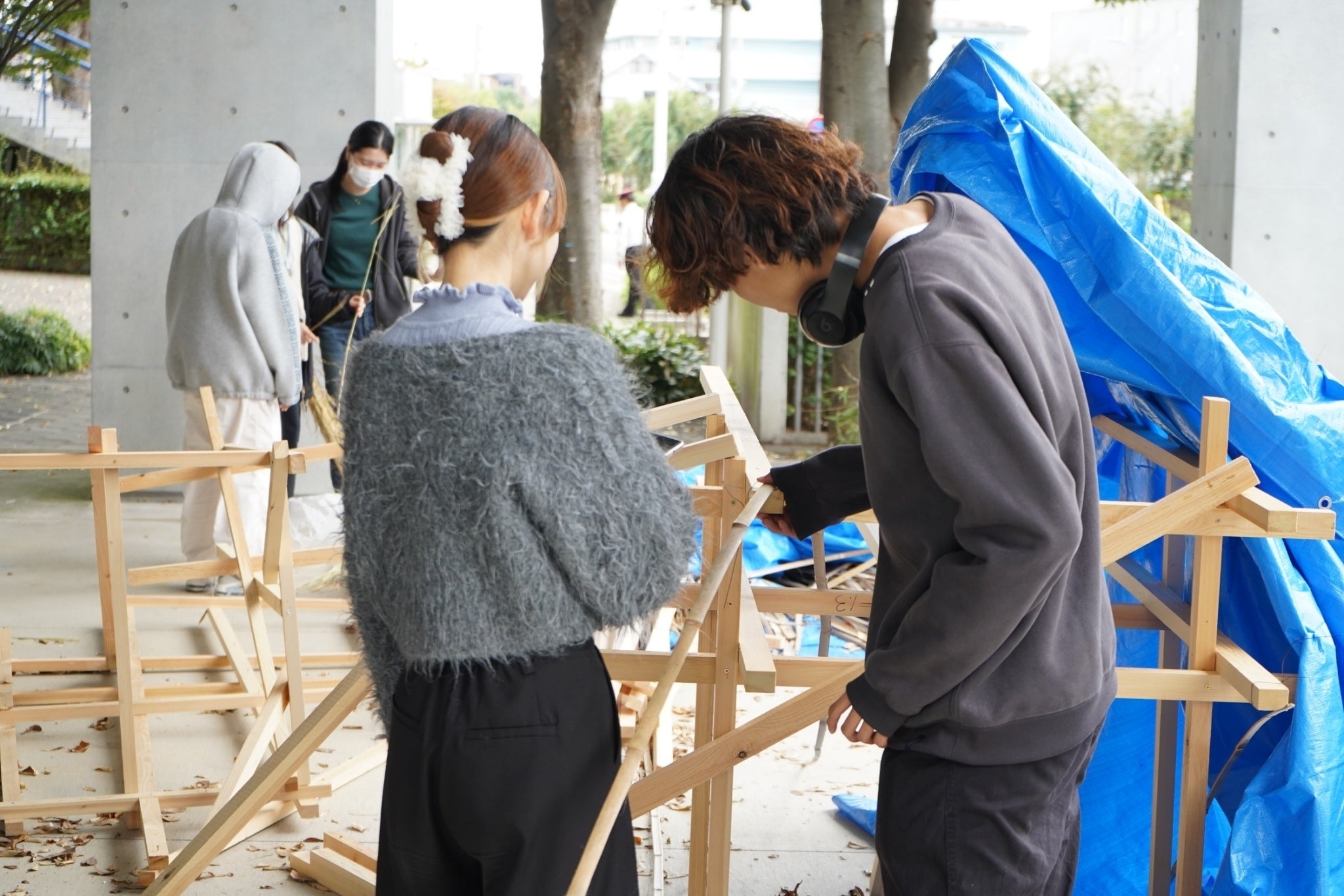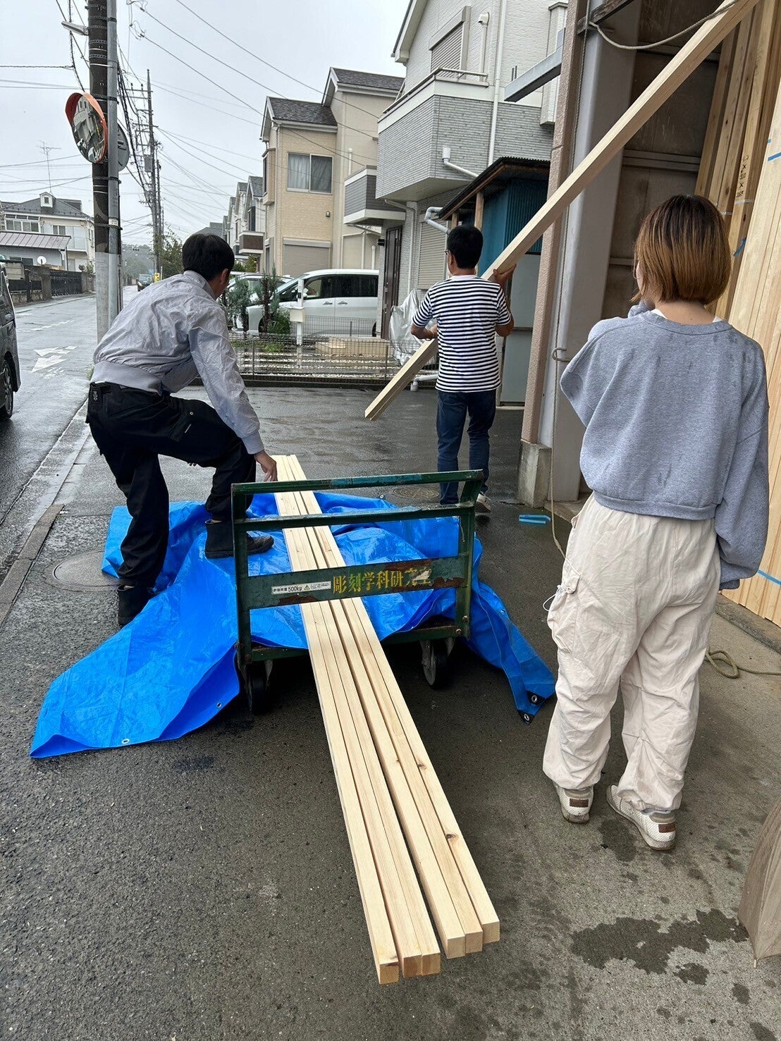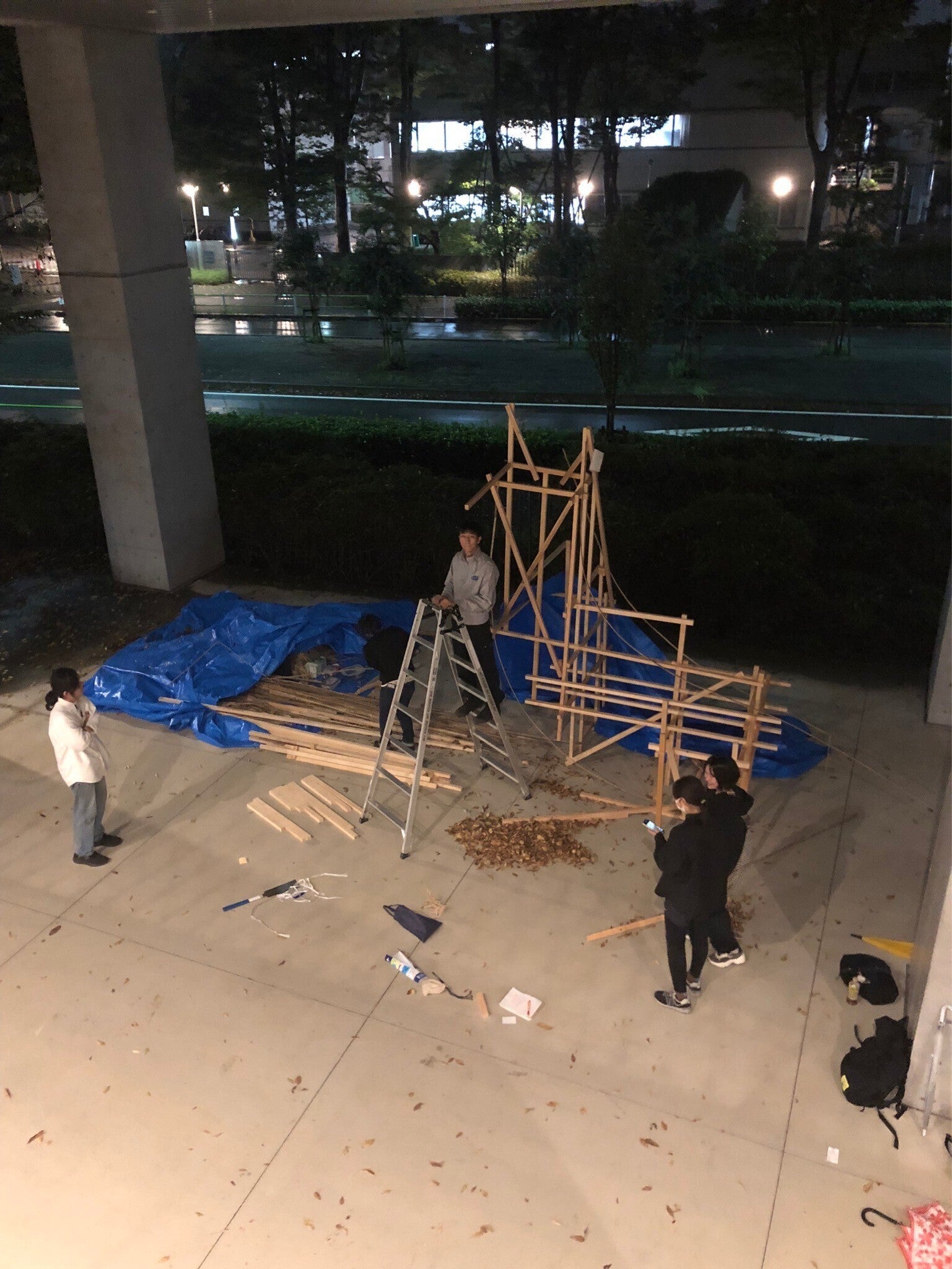 骨組みの補強に樽木の買い足し!雨の中でも頑張ります!