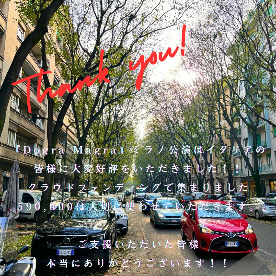 2024/12/05 16:34ご支援いただいた皆様、気にかけてくださった皆様、ありがとうございます!皆様のおかげで、ミラノ公演はイタリアの皆さんに大変好評をいただきました!いただいた感想を少しご紹介いたします。〜卓越したパフォーマーによるユニークなショー!日本の演劇は、魅力とユーモアに溢れつつも、私たち自身のものでもあると感じた。彼はとても表現力豊かで献身的だった。そして公演に関わった誰もがとても良かった。この公演を実現させた関係者にも感謝したい。普段はあまり言及されることのない舞台裏の人々にも。〜ミラノ公演映像も無料で配信されています。是非ご覧ください!公演映像返礼品につきましては、これから順次発送させていただきますのでしばらくお待ちください。これからも海外展開を視野に入れ、着実に活動していきます。今後とも立本夏山/Kazan office.を、よろしくお願いいたします!! もっと見る11月3日文化の日 高円寺で感謝イベント開催!!