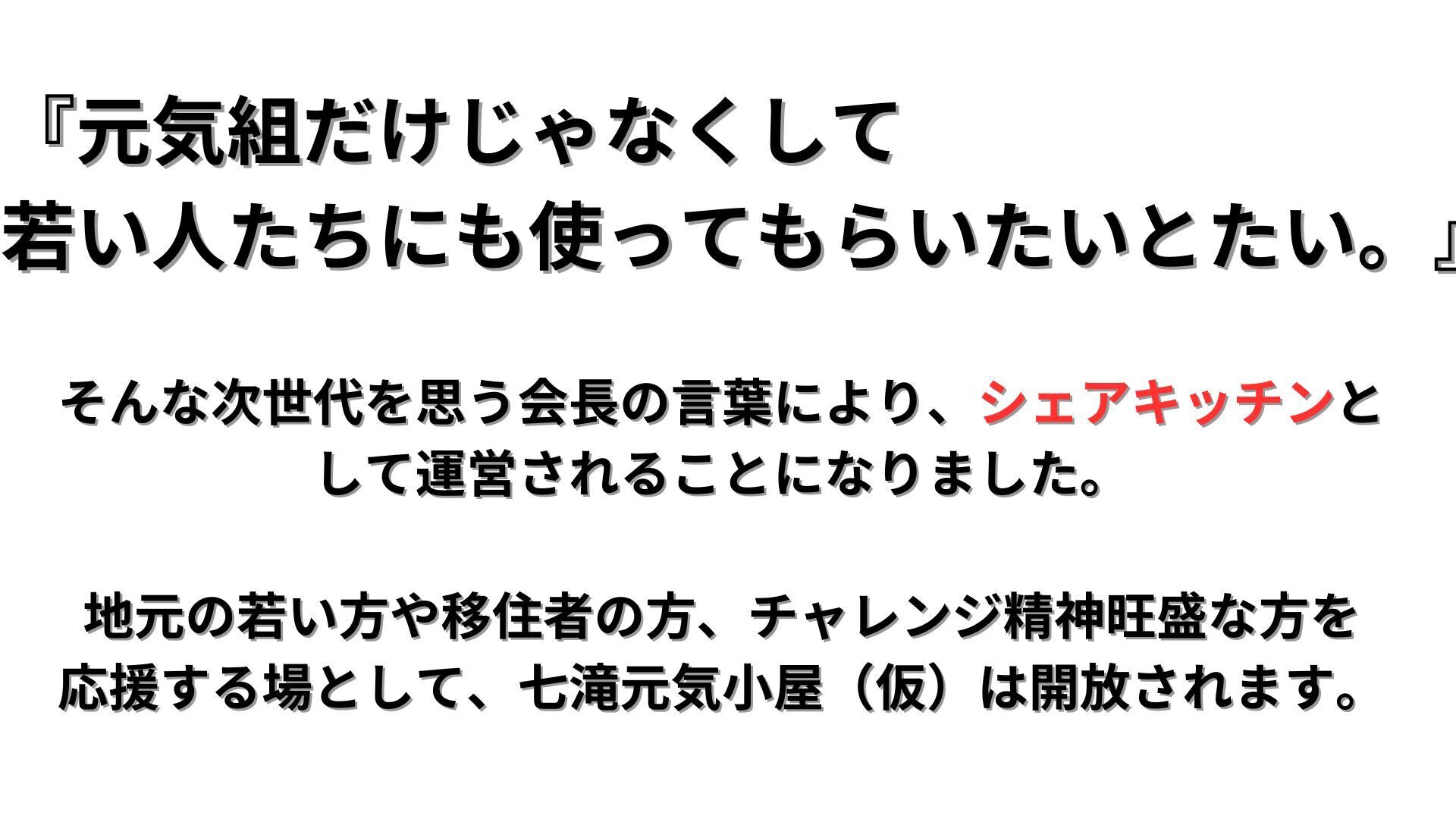 そんな七滝元気組のチャレンジへ、多くの方より応援を心よりお待ちしております。