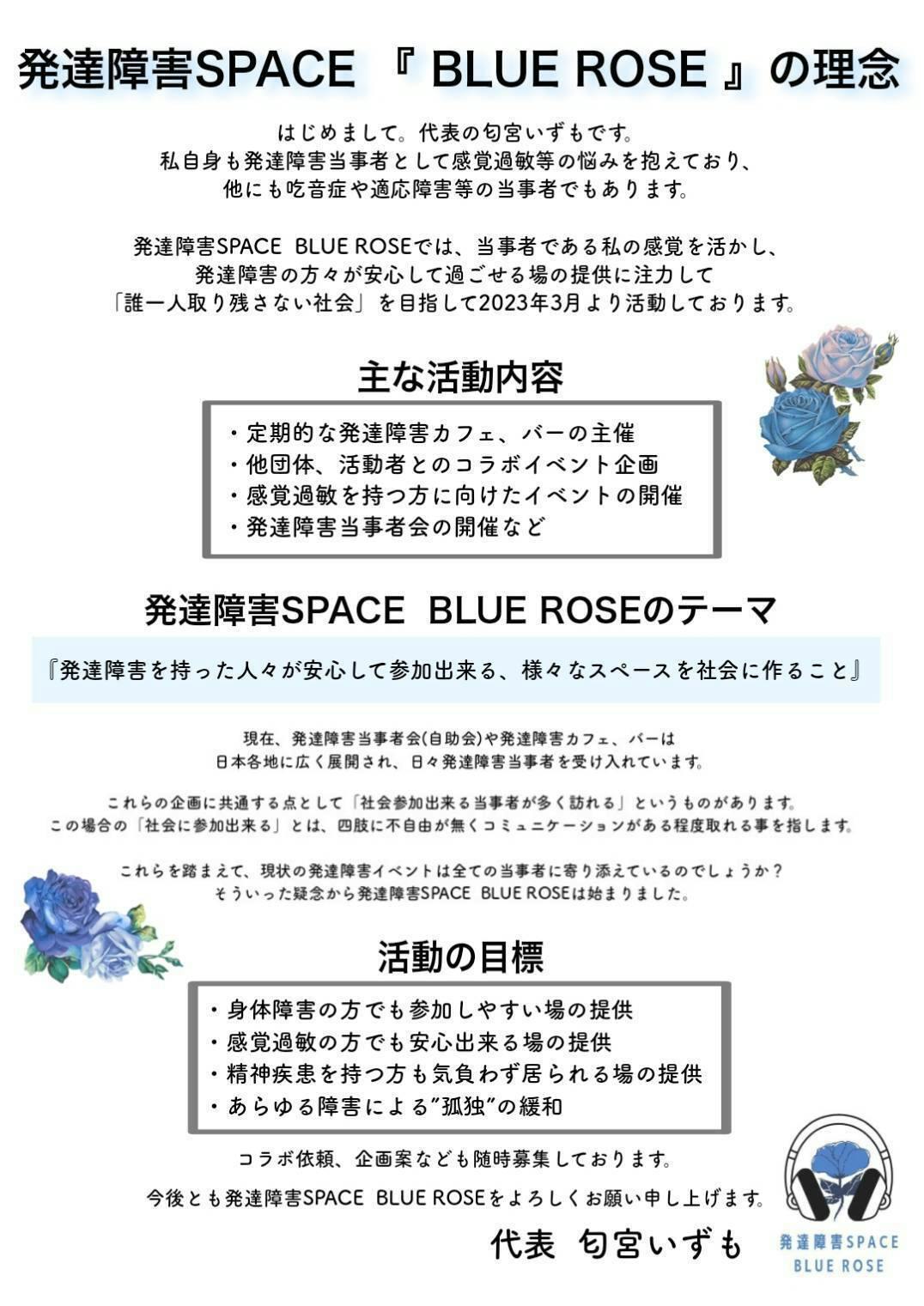 発達障害SPACE BLUE ROSEは、2023年3月から横浜を拠点に活動している団体です。