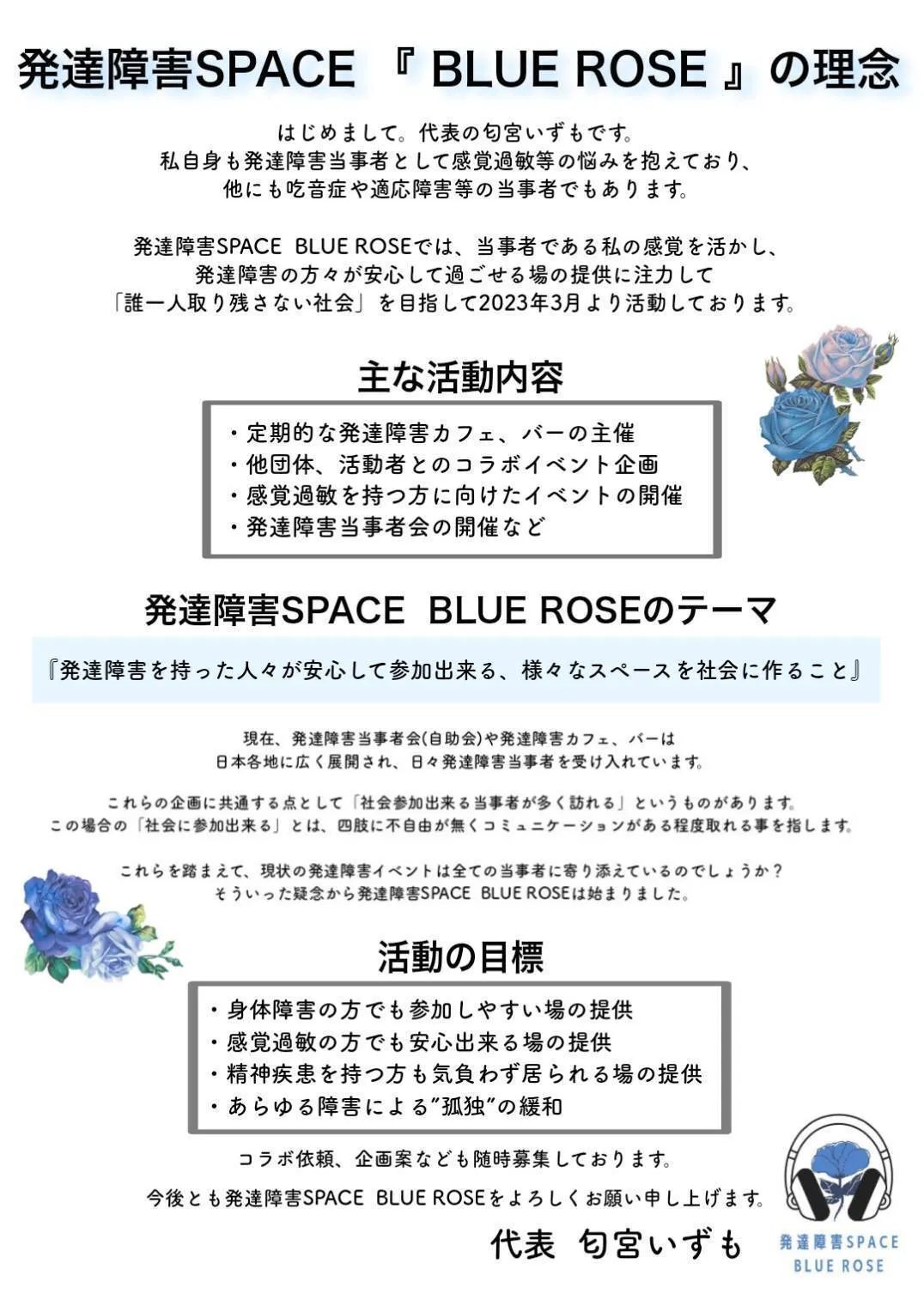 2021年、発達障害SPACE BLUE ROSEの前身である「マイノリティバーBLUE ROSE」を設立。