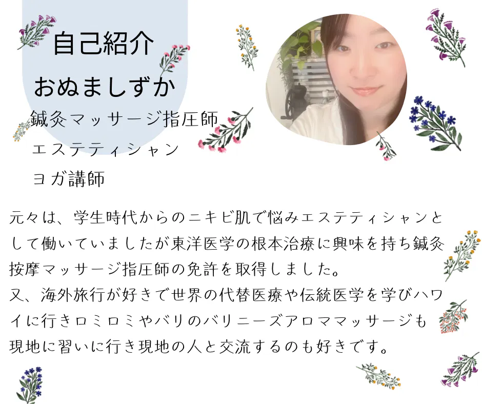 エステティシャン・原田式整体術・バリニーズアロママッサージ・ハワイアンロミロミ・タイ古式マッサージ・リフレクソロジ・アロマ検定3級・グラヴィティヨガ・ハタヨガ・メディカルヨガ・RYT200取得予定・アクセスバーズ・アクセスフェイスリフト・レイキ・ピプノテラピー・ハーブピーリング・登録販売者・心理学2級・エンプロイーメンタルカウンセラー・真我カウンセラー