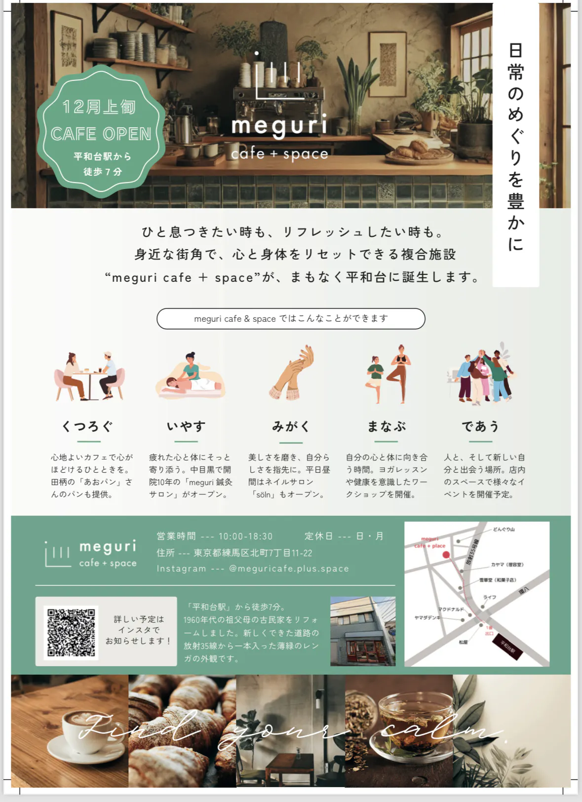 2024/12/18 19:40皆様のお陰様で12月1日にOpening partyをする事が出来て12月3日に無事OPENしました。オープニングパーティーでは、関係者の皆様と家族友人や近所の方が来てくれて本当に賑やかで楽しかったです。お料理も大好評で、練馬のお野菜を使った綺麗な色どりと身体に良いものになりました。たくさんの方に来て頂きほんとにありがたかったです。OPENはしたものの、まだまだやる事はたくさんあるので日々それに勤しむ毎日です。クラウドファンディングのお手紙が遅れてしまって申し訳ありません。その為、期限を1ヶ月伸ばし対応致しますのでご連絡して頂ければ幸いです。もちろん、現在も治療券や30%割引券は使用可能なのでmeguri cafe・治療院にお越しください。また、インスタグラムも頑張って投稿していますのでどうぞ宜しくお願い致します。今後の活動内容はそちらで報告していきたいと思っています。こちらから→インスタ登録よろしくお願い致します。寒さが厳しくなってきましたので、皆様どうぞ温かくしてご自愛下さいね。 もっと見る
