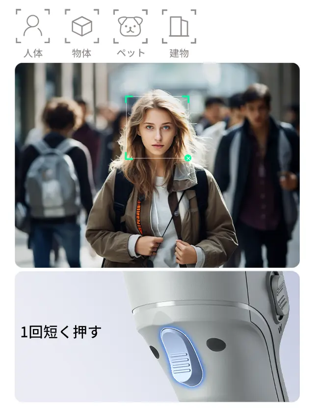 顔認識アルゴリズムと専用AIチップを組み合わせることで、精度の高い自動追跡を実現しています。どのように位置を移動しても、あなたは常に画面の中央に!