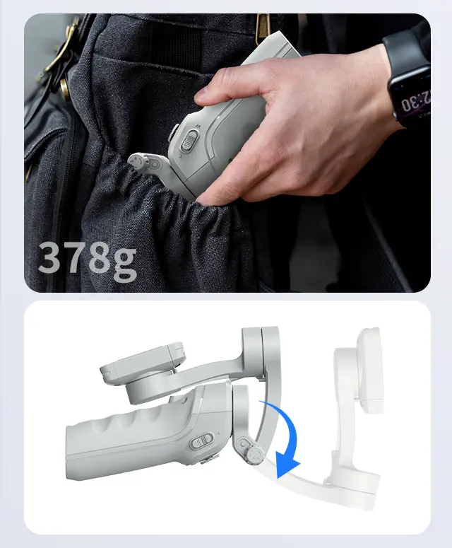 「TOKQI-M1」本体は折りたたみ式設計で、ポケットに入れるほどのコンパクトサイズが実現!携帯性が大幅に向上し、スマホ撮影の「手軽さ」と「気軽さ」がさらにアップしました。