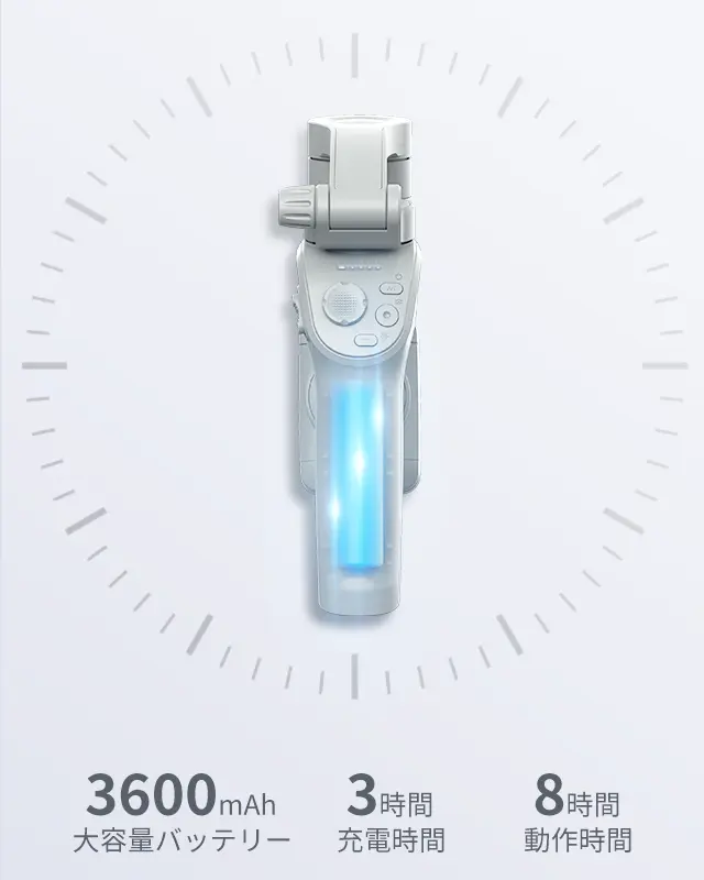 さらに本体は3600mAh大容量バッテリーを内蔵しており、充電3時間で最大約8時間動作できます。バッテリー切れて、お気に入りのシーンが記録できない心配もなくなります。