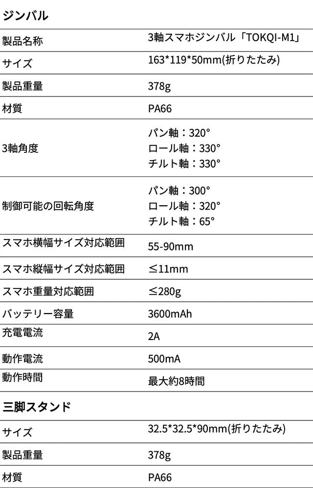 そんな不便さを取り除いたのが今回ご紹介したジンバル「TOKQI-M1」です。