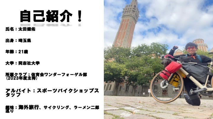 私は同志社大学4回生(2024年度は休学中)の太田健佑と申します!