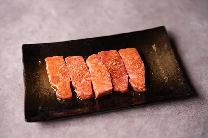 黒毛和牛の様々な部位を均一の厚さでスライス。職人が厳選して切り落とし、上質な赤身と旨みがつまった甘い脂身を楽しめます。