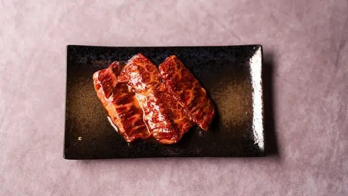 黒毛和牛の大トロとも呼ばれる三角バラを使用。