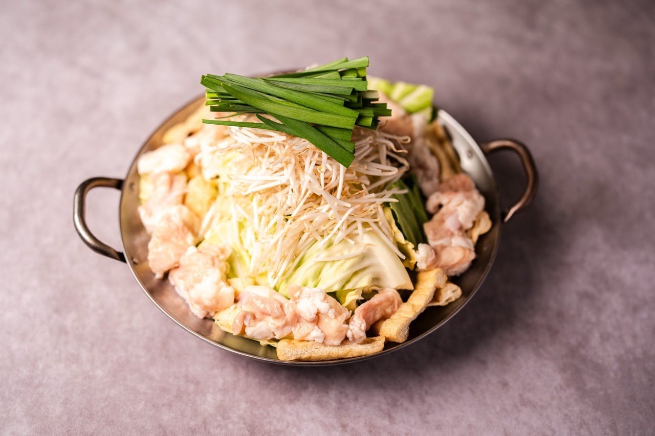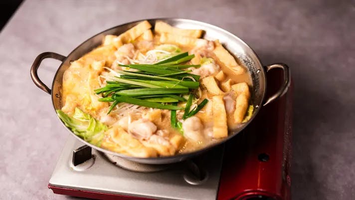 京都の白味噌仕立ての特製の出汁で仕上げた、当店自慢のお鍋。プリプリのホルモンと良く絡み、濃厚でありながらさっぱり食べられる一品。