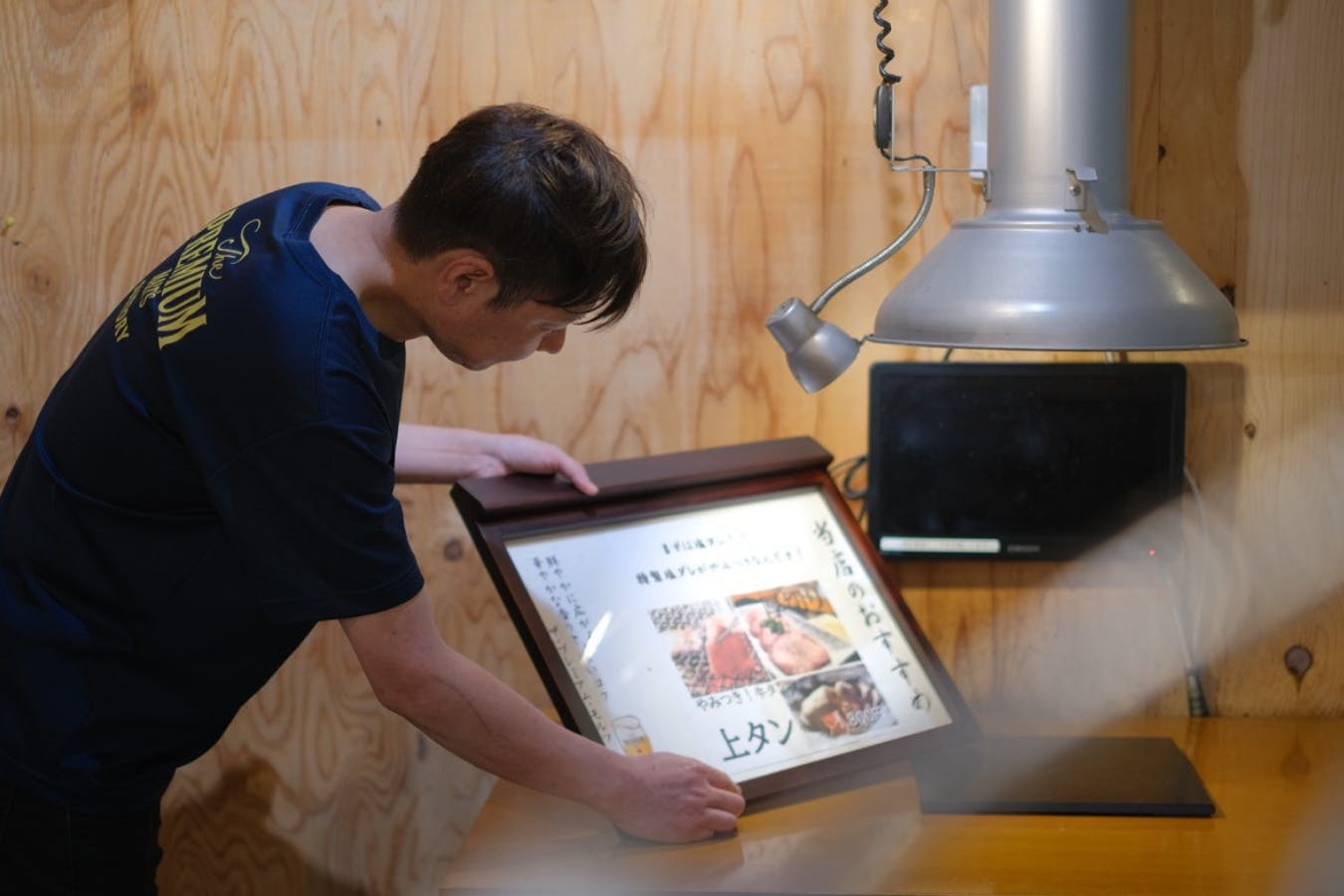 開店から半年後、少しずつ常連の顔ぶれが増え、看板商品のもつ鍋や焼肉が支持されるように。