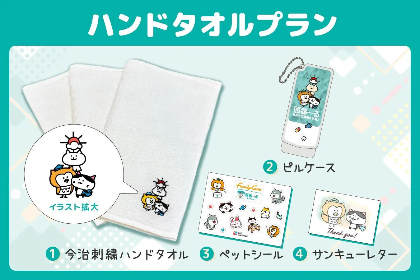 頭痛ーるフレンズの今治刺繍がかわいい「ハンドタオルプラン」を追加しました!